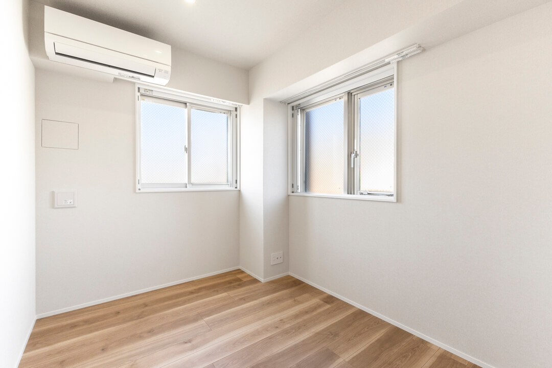 キッチンの隣にある洋室3。約4.7帖です。北西2面採光で明るい光が差し込みます。換気しやすいのが嬉しいですね。クローゼット完備で収納スペースもしっかり確保◎。子ども部屋やワークスペースなど、家族構成に合わせて活用できる空間です。