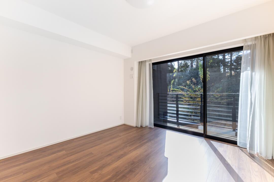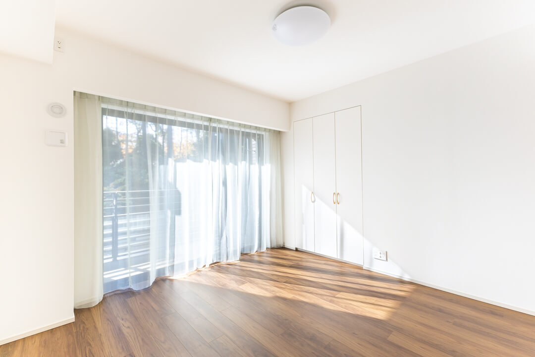 約8.9帖の洋室1。ゆとりある広さで主寝室にぴったりですね。南西向きの大きな窓からあたたかい光が降り注ぎ、心地よい朝を迎えられそうです。