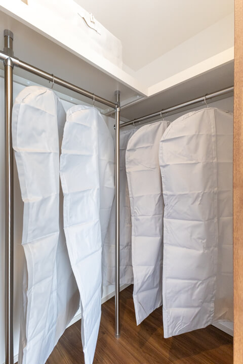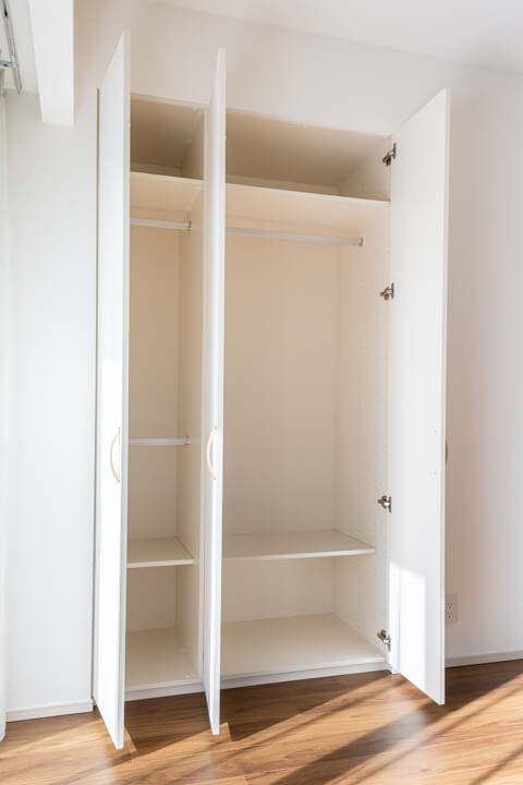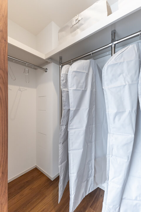 約1.7帖のWIC(ウォークインクローゼット)とクローゼットを完備していて、収納性に優れています。衣類はもちろん、トランクケースやゴルフバッグといった大きな荷物も収納でき、居室空間を有効活用できます。