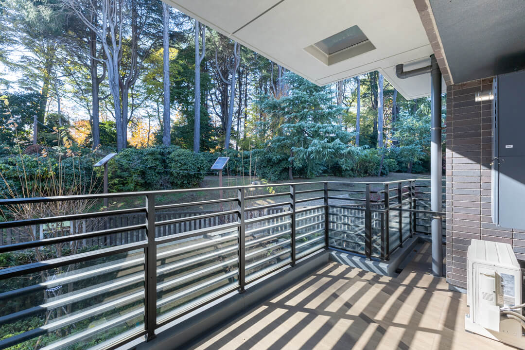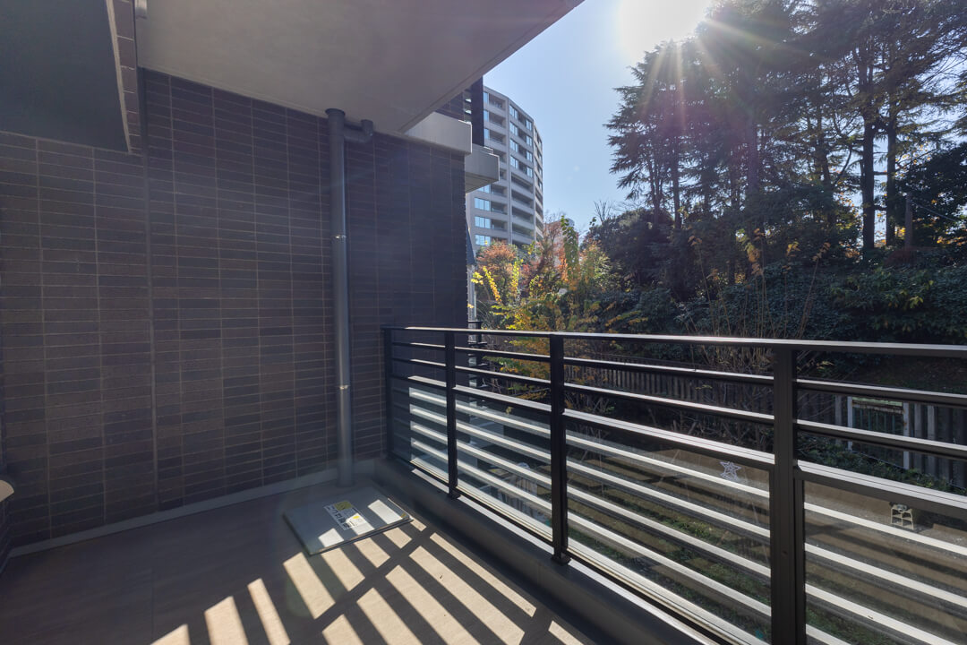 バルコニーは2ヶ所にあり、各居室に接続しています。合計15.18㎡の広々としたスペース。新宿御苑の緑を鑑賞でき、都会の喧騒を忘れてリフレッシュタイムを過ごせそうです。南西向きなので、晴れた日には日向ぼっこもおすすめです。