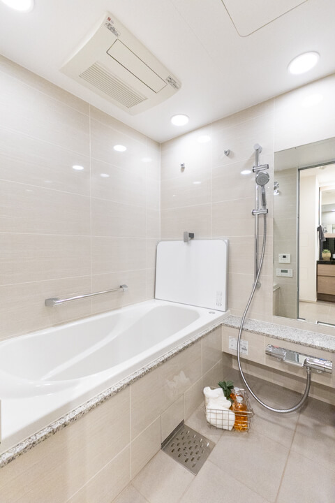 やさしい色調で整えられたバスルームは、やすらぎの空間。浴室換気乾燥暖房機・追い焚き機能に加え、ミストサウナが搭載されています。汗をかいてリフレッシュしたり、ゆっくりボディケアをしたり、快適なバスタイムを過ごせそうですね。