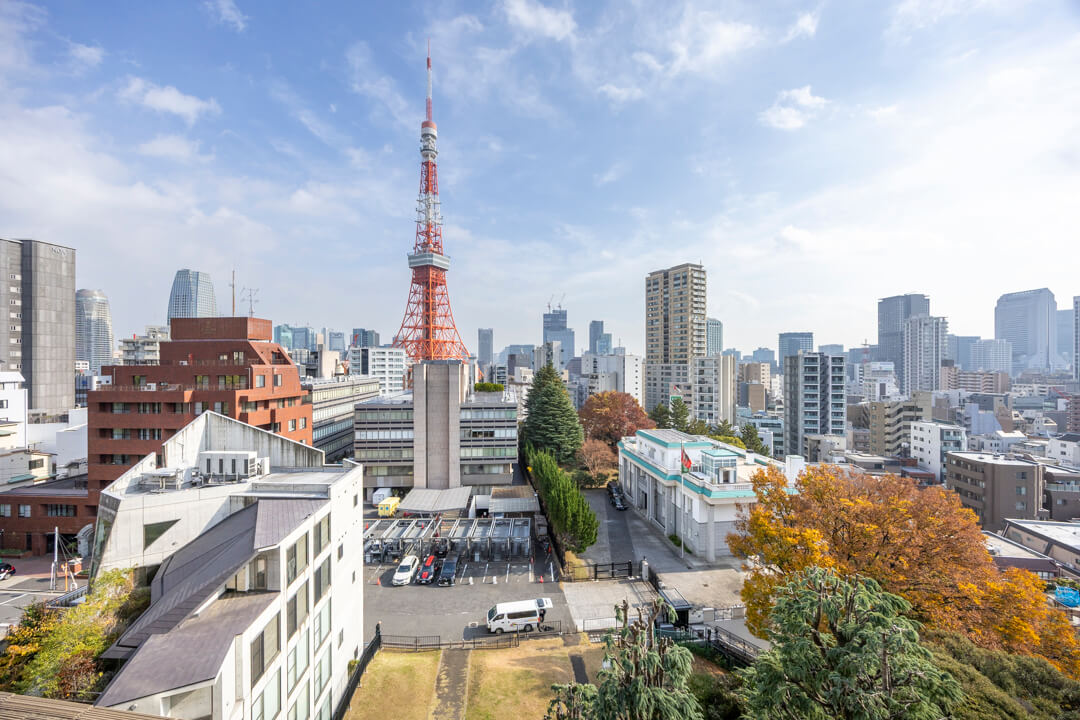 最寄り駅である東京メトロ南北線・都営大江戸線「麻布十番」駅から徒歩6分のところにあります。周辺は閑静な住宅街で大使館も点在しているので治安も◎。コンビニやスーパーなども揃っているので日用品などの買い物に困ることは無さそうですよ。また、駅周辺には商店街もあるので買い物だけでなく食事も楽しむことができます。リーズナブルなチェーン店からおしゃれなカフェやレストランなど様々なお店が軒を連ねているので、お気に入りのお店を見つけるのも楽しみの一つになりそうです。さらに、麻布台ヒルズや東京タワーなども徒歩圏内です。