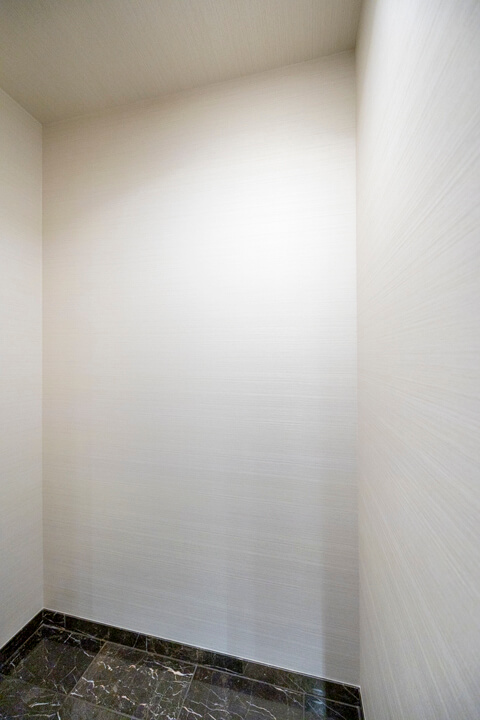 壁面には、調湿機能と消臭機能を備えたデザイン性の高いエコカラットが使用されています。お部屋のアクセントになる上に調湿消臭効果もあるとは嬉しいですね。さらに、ピクチャーレール付きのため、壁を傷つけずに絵画などを飾ることができます。