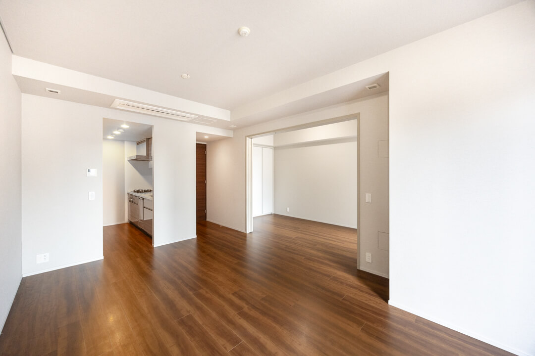 隣接する洋室との間仕切り戸を開ければ、約17.9帖の一体空間に。開放感がUPし、さらに広々と過ごすことができます。ゲストが来た時に活躍しそうですね。