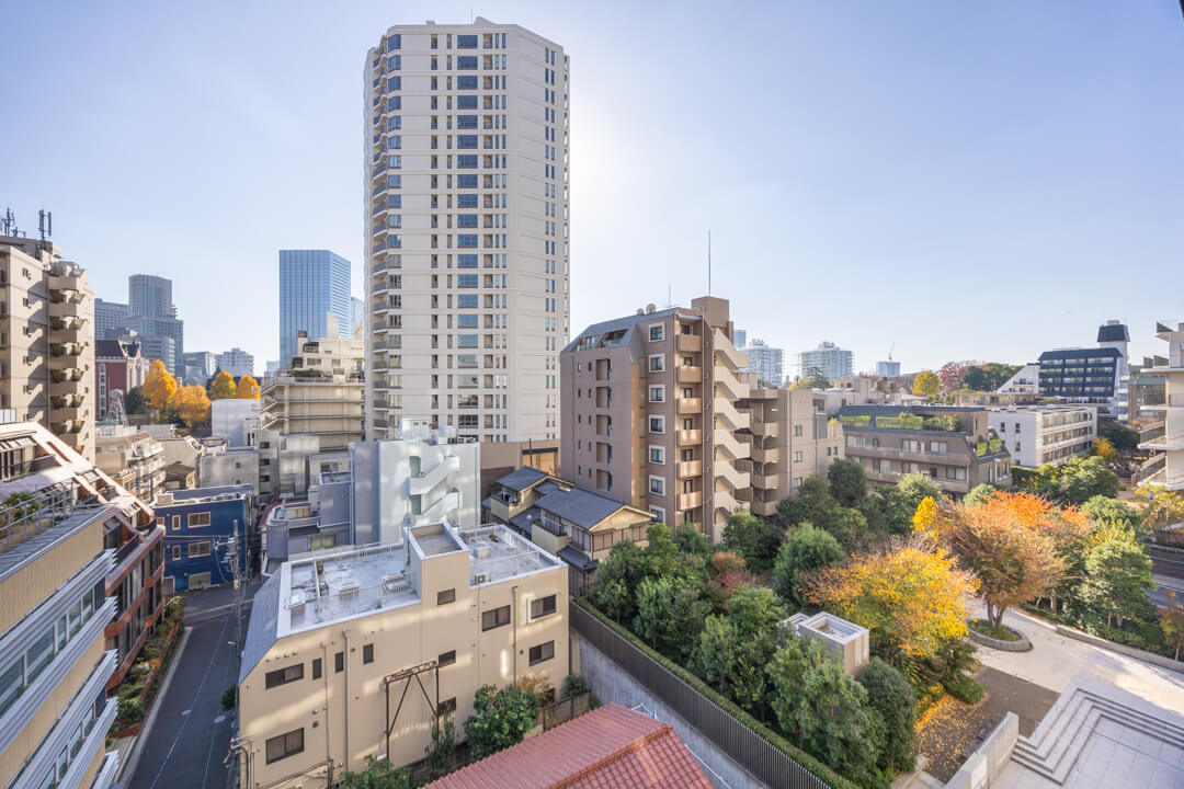都営大江戸線「赤羽橋」駅より徒歩6分、都営三田線「芝公園」駅より徒歩8分。桜田通りから一本入った、大使館や学校の建ち並ぶ閑静な一角に位置しています。「三田」駅や「麻布十番」駅、「田町」駅も徒歩圏内で、複数路線利用可能です。マンションから徒歩5分圏内にスーパー、コンビニがあり、日々の買い物に困ることはありません。小学校が至近にあるのも、子育て世帯に嬉しいポイントです。