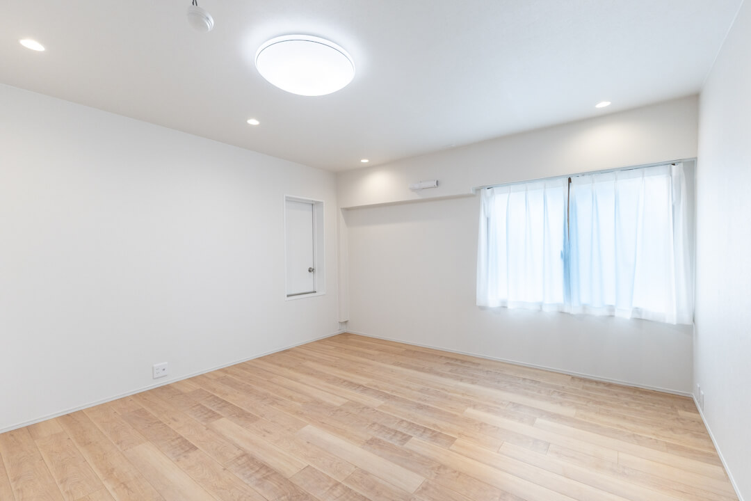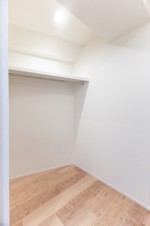 さらに奥には、約7帖の寝室があります。窓からやわらかな自然光が差し込む空間。WIC(ウォークインクローゼット)完備で収納性の高さが魅力的です。衣類はもちろん、トランクケースやゴルフバッグといった大きな荷物も収納可能◎。すっきり片付けて、居室空間を有効活用できます。