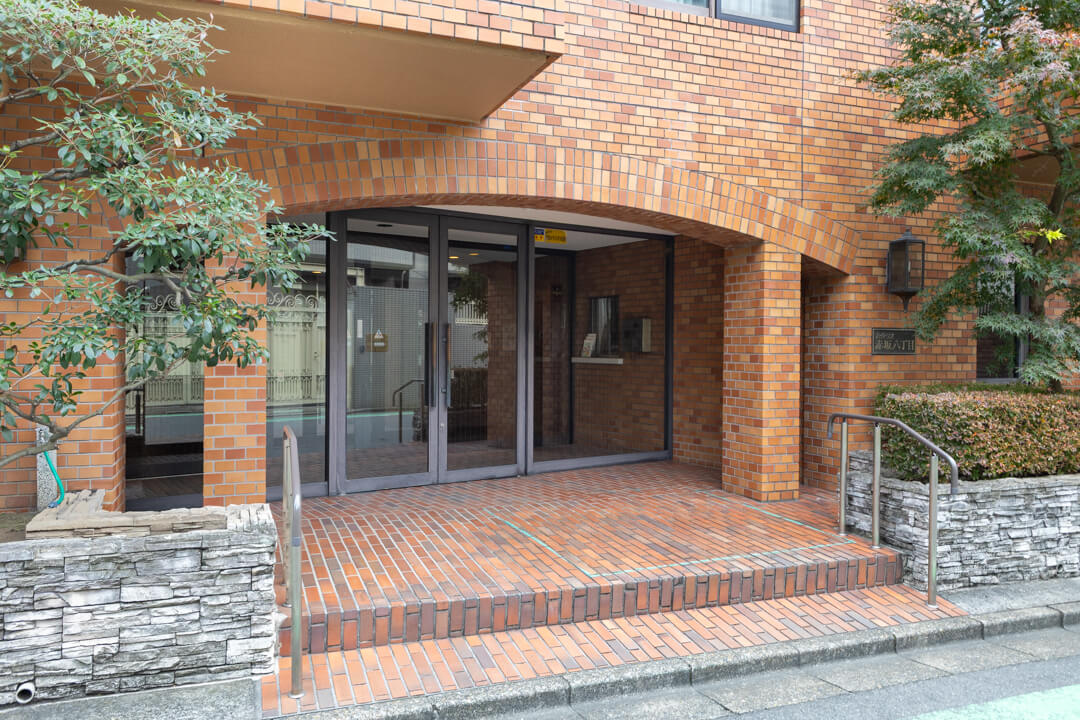 1978年(昭和53年)10月竣工、レンガタイル貼りの重厚感漂う外観が印象的なマンションです。鉄筋コンクリート造地下1階付5階建、総戸数は25戸。モニター付オートロック完備でセキュリティ面は安心です。プライバシーを守りやすい内廊下設計で、天候の影響を受けにくいのも嬉しいポイントです。エントランスには宅配ボックスが設置されていて、外出が多くても荷物を受け取りやすいですよ。細則はありますが、大切なペットと一緒に暮らすことができます。