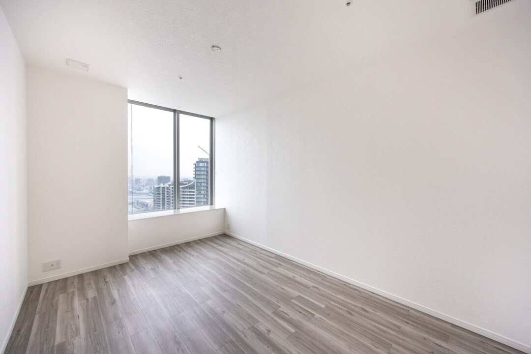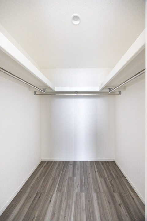約8.8帖の洋室1。北東向きの窓からやわらかな自然光が届きます。ゆとりある広さで主寝室にぴったり。大型WIC(ウォークインクローゼット)完備で収納性にも優れています。衣類はもちろん、トランクケースやゴルフバッグといった大きな荷物も収納でき、居室空間を広々と使うことができます。