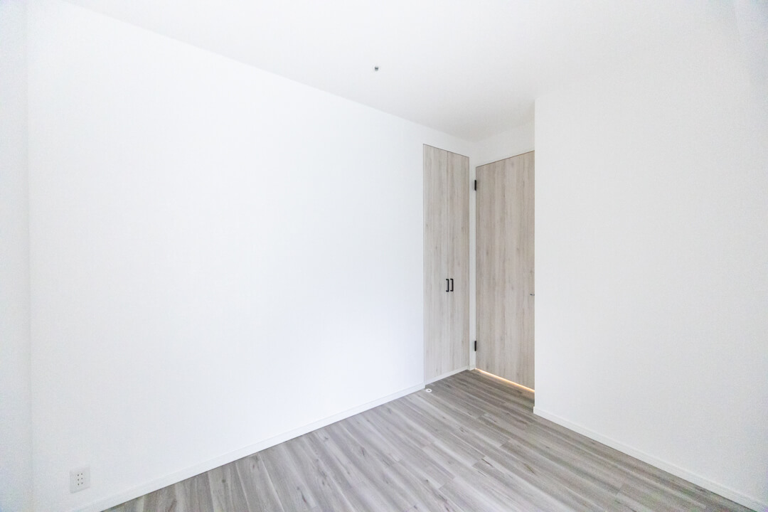 約5.1帖の洋室3。廊下に面していてプライベート性の高い空間です。寝室としてはもちろん、ワークスペースや趣味部屋にしても良いですね。ライフスタイルに合わせて活用してください。クローゼット付きで収納スペースもしっかり確保されています。