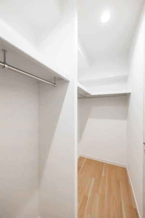 約5.9帖の洋室1は、玄関側に位置しているため独立性があります。書斎や客間など色々な使い方ができそうです。また、ウォークインクローゼット付きのため、洋服や大きめの荷物もすっきりと収納することができますよ。
