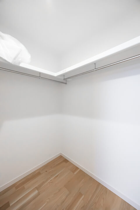 約6.3帖の洋室2は、ゆとりがあって主寝室として使っても良さそうです。南東向きのため日当たりが良好で、ウォークインクローゼットも付いています。荷物をきちんと収納できると、居住スペースをより有効的に使えるので嬉しいですね。