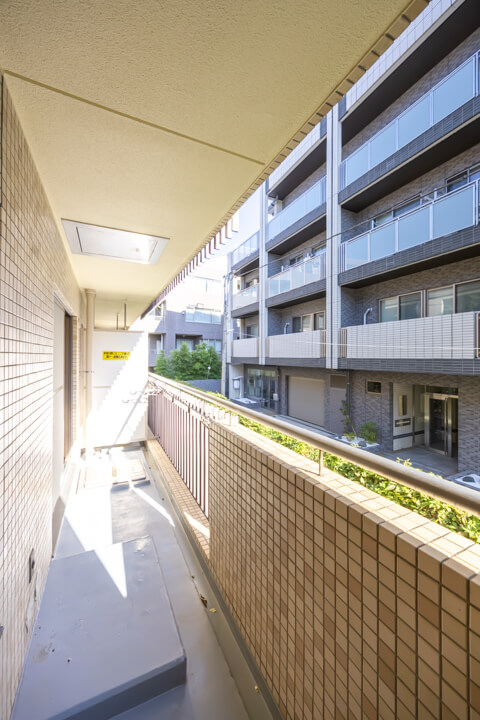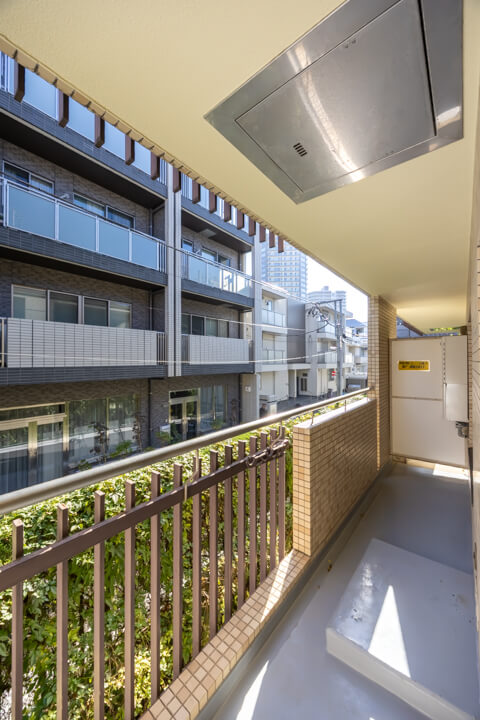 約7.79㎡のバルコニーは南東向きです。2階部分ですが、目の前の道は通り抜けができないので、人通りが少なくて◎。洗濯物も干すことができそうですよ。