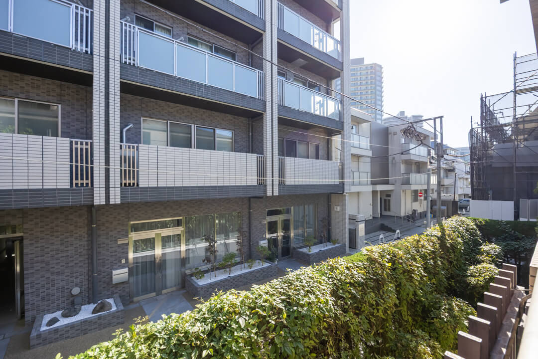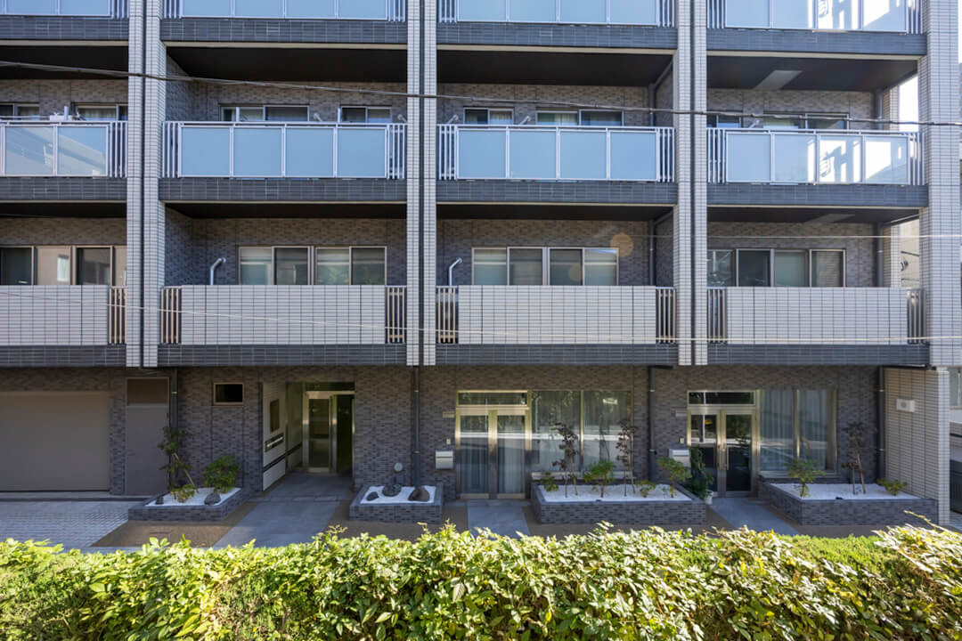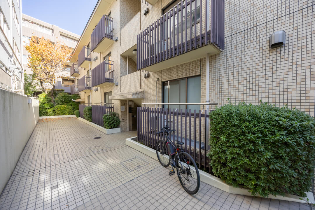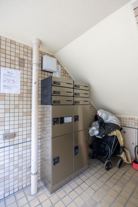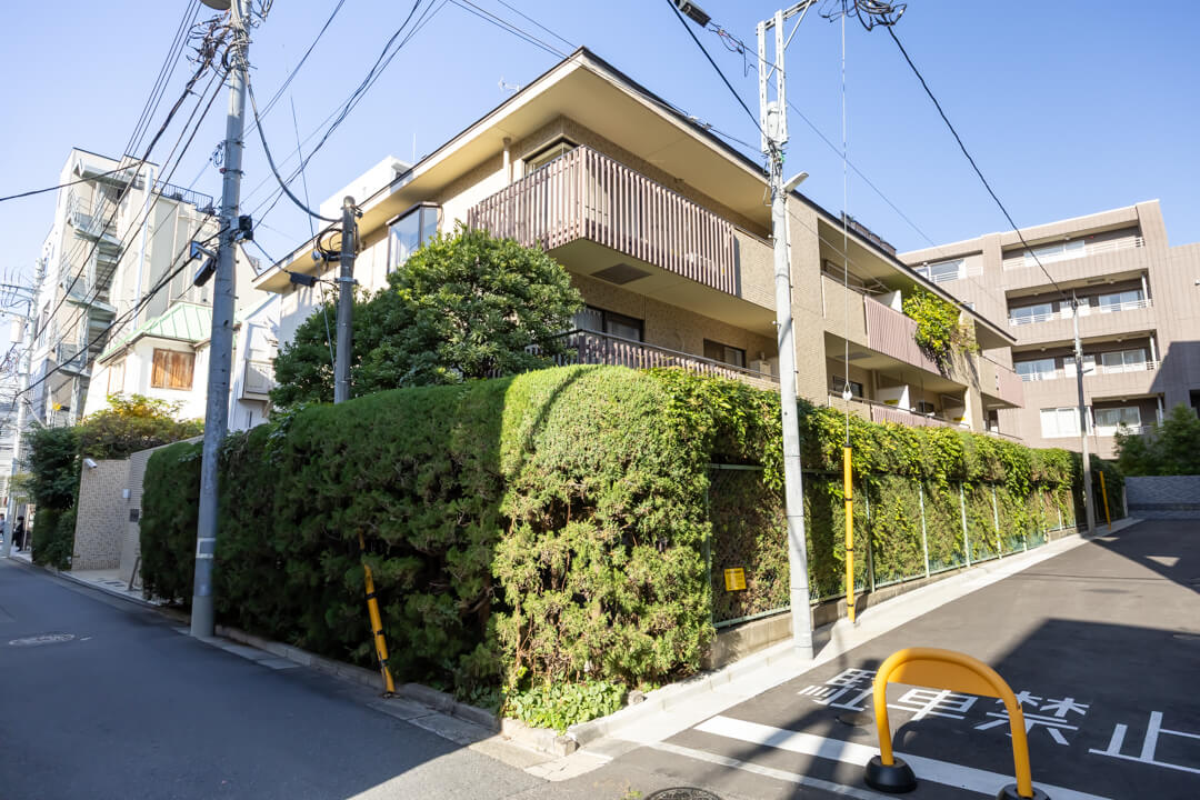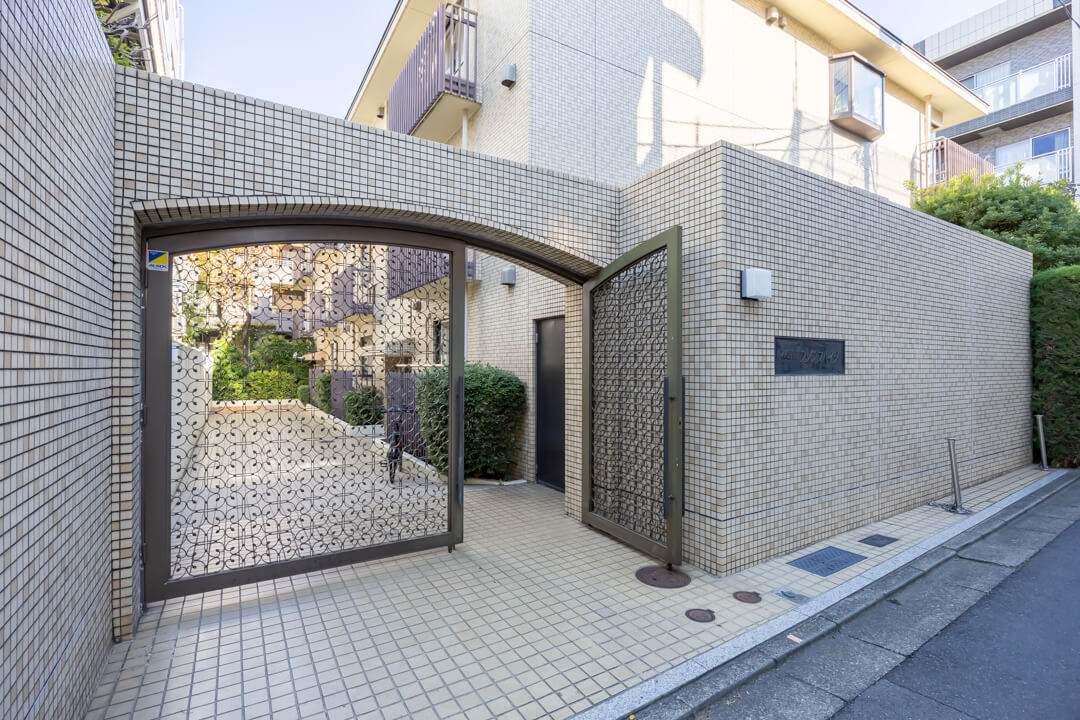 1984年(昭和59年)3月竣工、総戸数12戸、鉄筋コンクリート造、4階建ての低層ヴィンテージマンションです。ベージュトーンのタイル貼りの外観は落ち着きのある印象。オートロックやエレベーターはありませんが、入口にはデザイン性のある門扉が造られているので、プライベート感はあります。また、宅配ボックスが設置されており、忙しい方でも時間を気にせずに荷物を受け取ることができます。