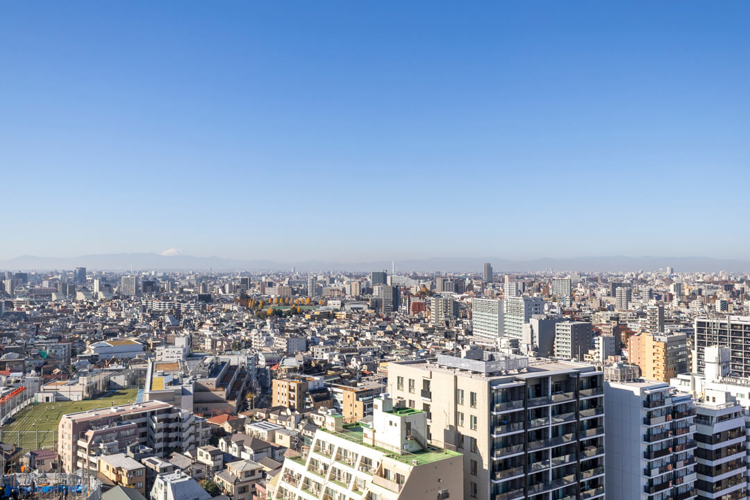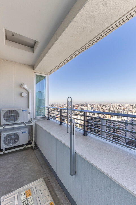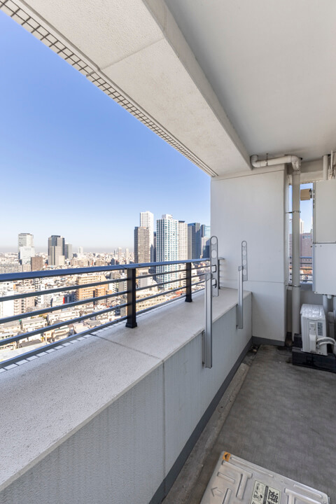 リビングダイニングに面した約8.62㎡のバルコニー。19階部の高層階につき眺望良好。天候によっては富士山も望むことができますよ。
