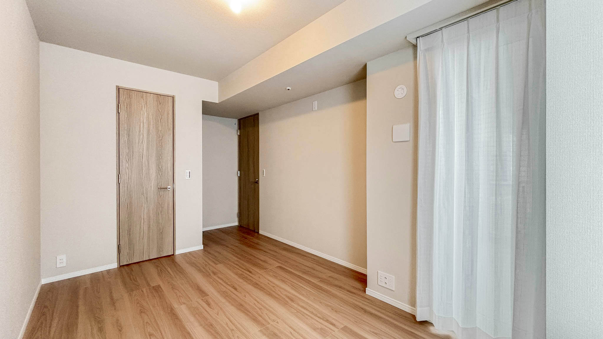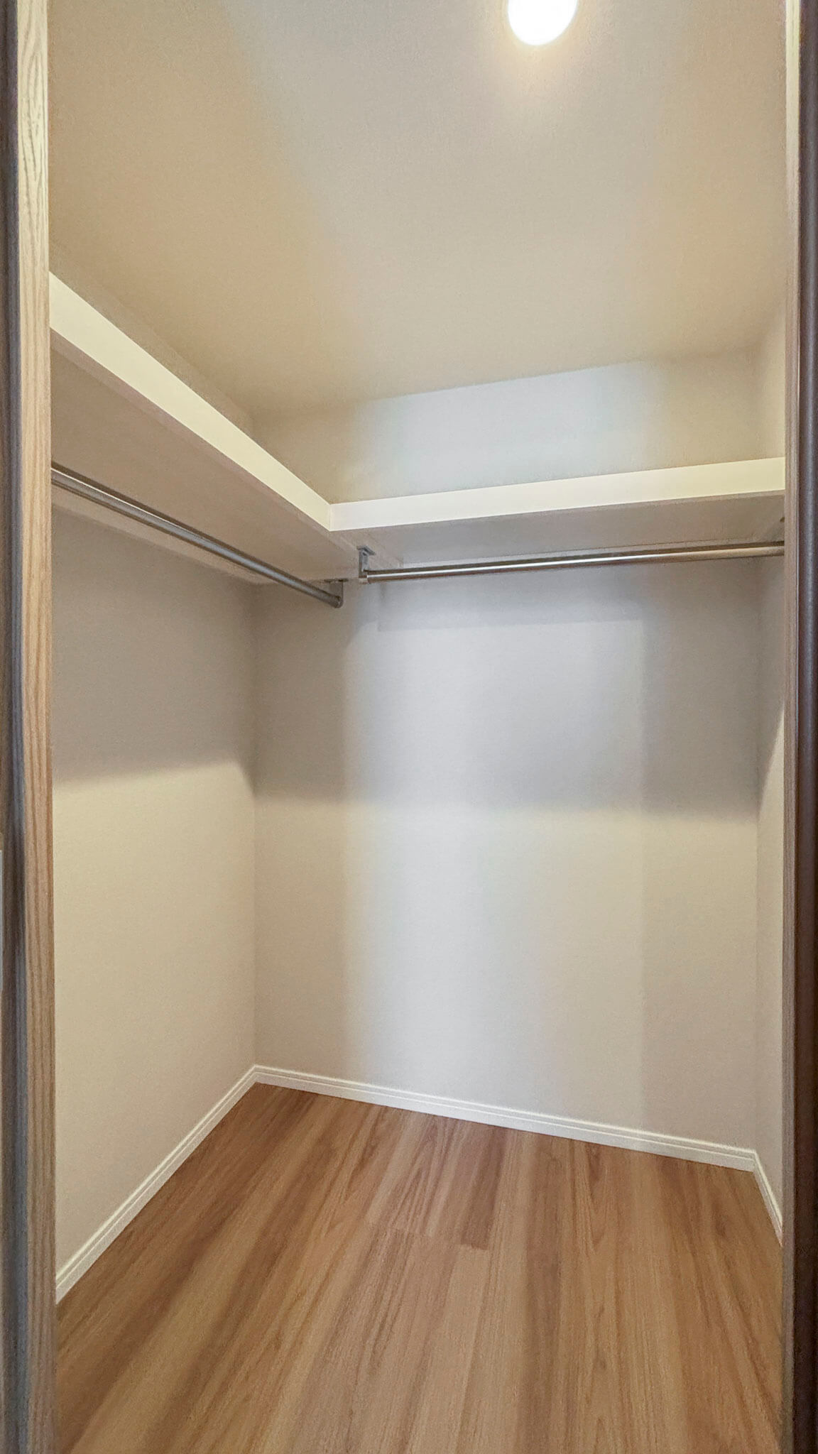 約8.3帖の洋室1。ゆとりある広さで主寝室にぴったりです。WIC(ウォークインクローゼット)完備で収納力があり、衣類はもちろん、トランクケースや季節家電といった大きな荷物も収納可能◎。すっきり片付けて、居室空間を有効活用できます。