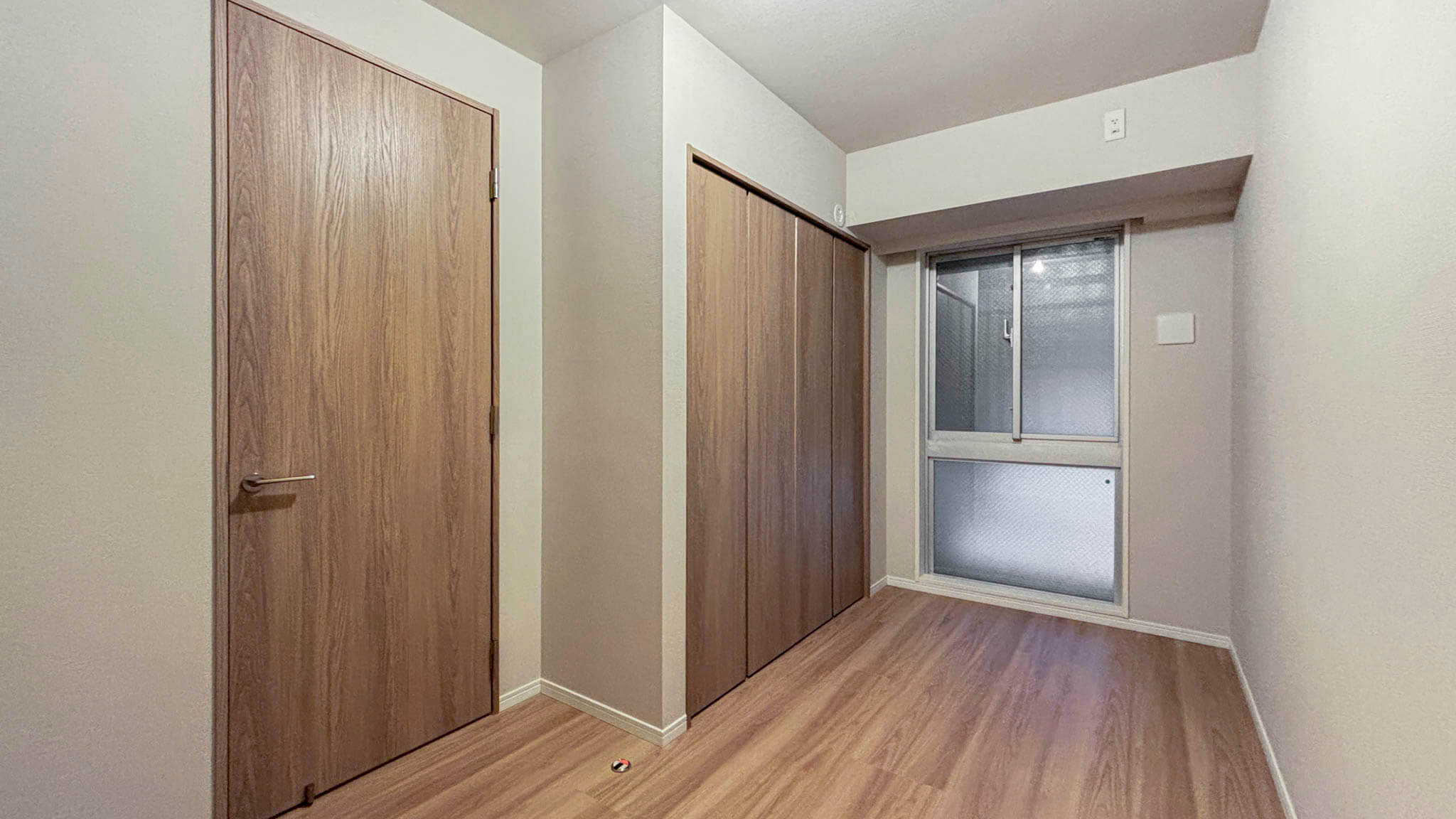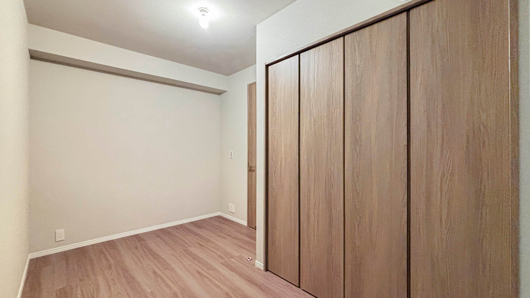 約5.2帖の洋室2。廊下に面していて、プライベート性の高い空間です。クローゼット完備で収納スペースもしっかり確保◎。寝室としてはもちろん、ワークスペースや趣味部屋にしても良いですね。