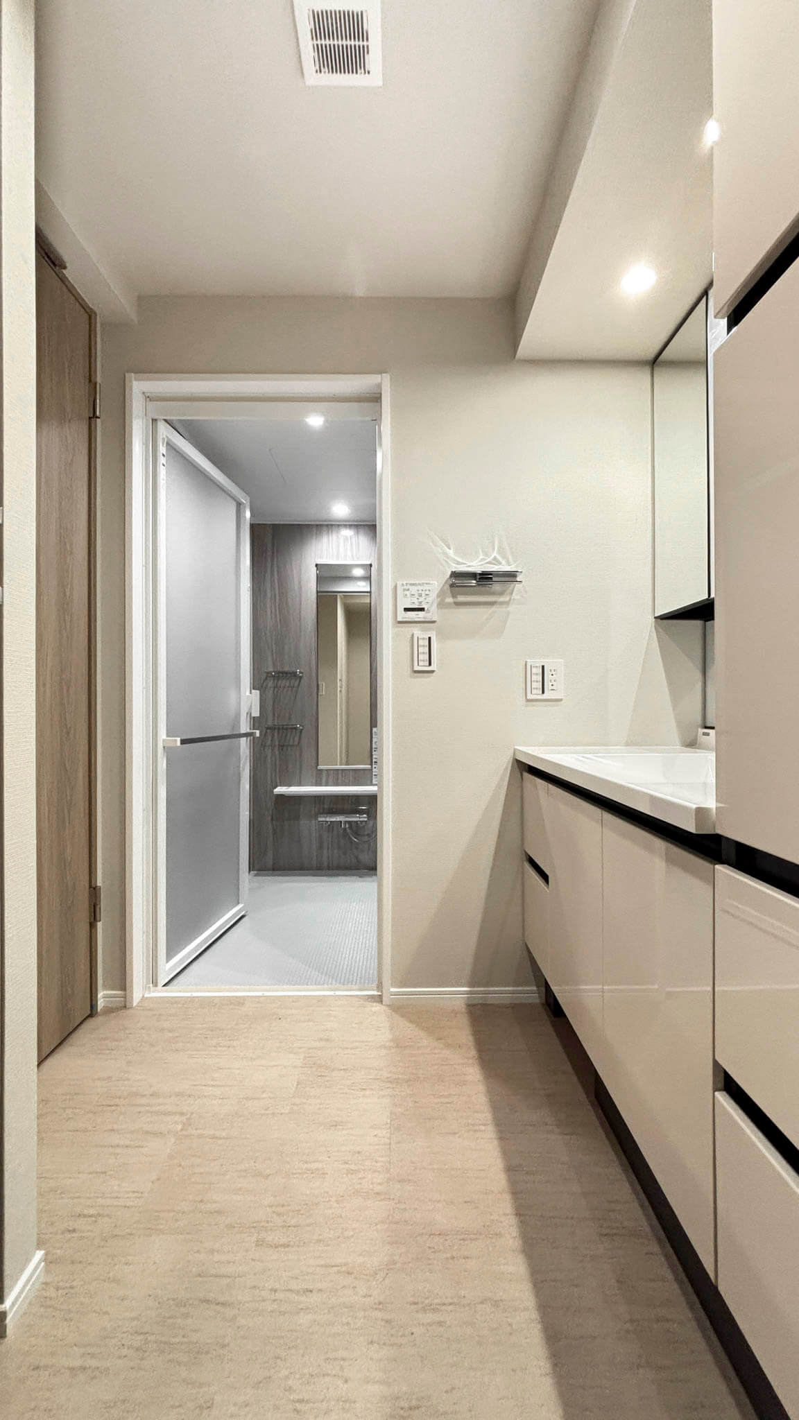3口のIHクッキングヒーターや浄水器一体型水栓、食洗機を完備しています。調理も後片付けも捗りそうですね。IHはスイッチで火力を調節でき、ガスコンロよりも調整が簡単。凹凸がなくフラットでお手入れがしやすいのも魅力的です。ディスポーザーも搭載されているので、掃除の手間が軽減され、悪臭の原因を防いでくれます。