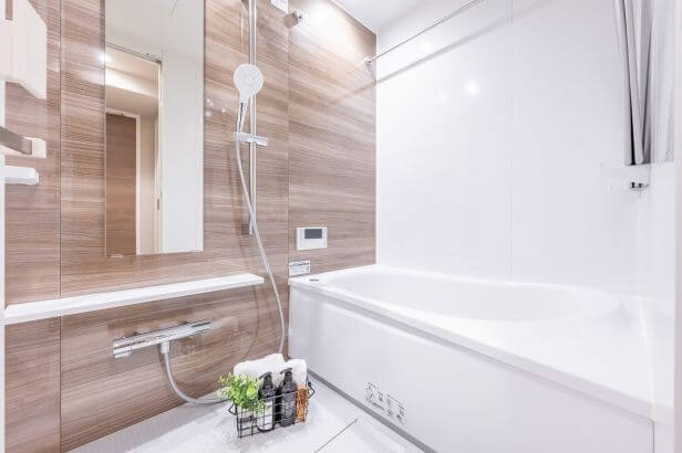 ウッド調であたたかみのある雰囲気のバスルーム。追い炊き機能の他、浴室換気乾燥機とランドリーパイプ付きで雨の日や冬場の洗濯にも困りません。
