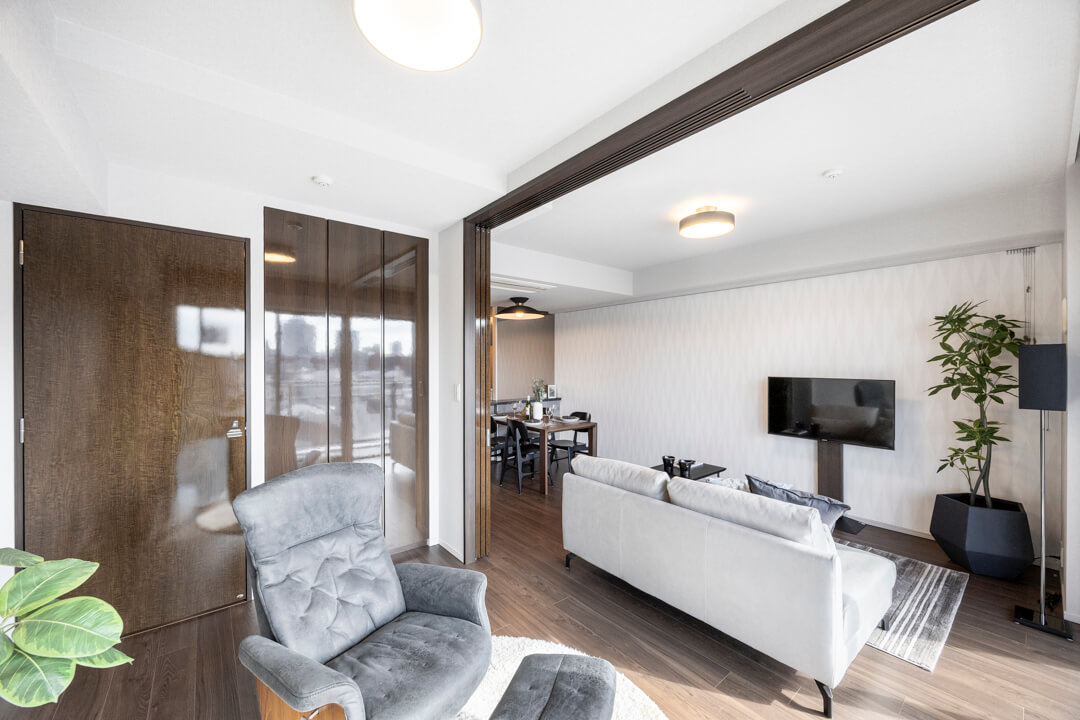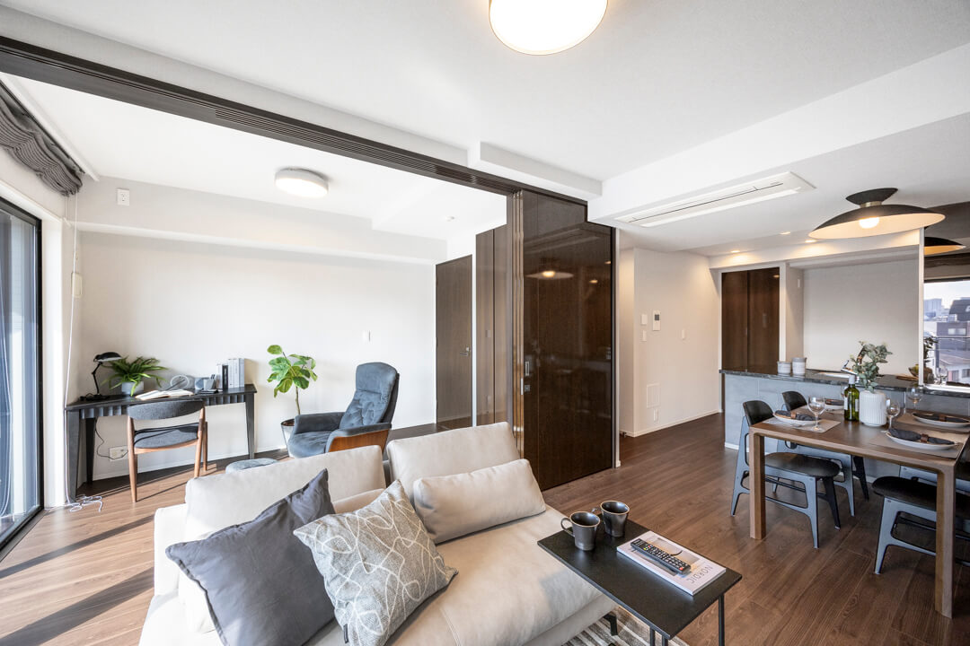 寝室2との引戸を開閉することによって、空間をフレキシブルに使うことができますよ。