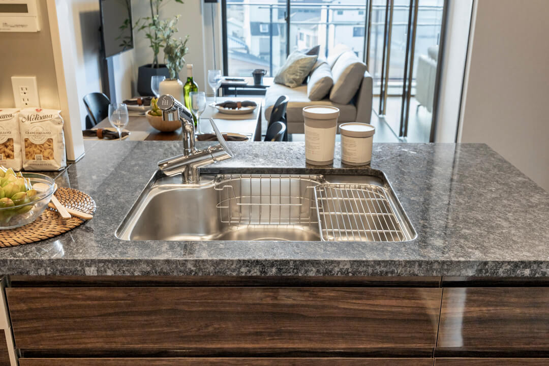 3口コンロ、グリル、ディスポーザー、食洗機付きと設備面も充実しています。シンクも広々としているので野菜などが洗いやすそうですよ。
