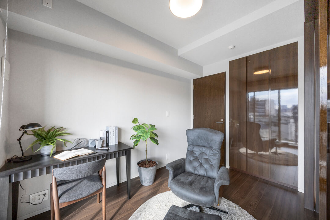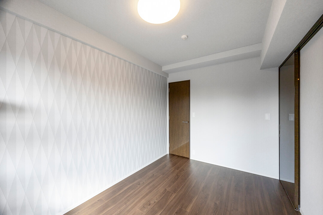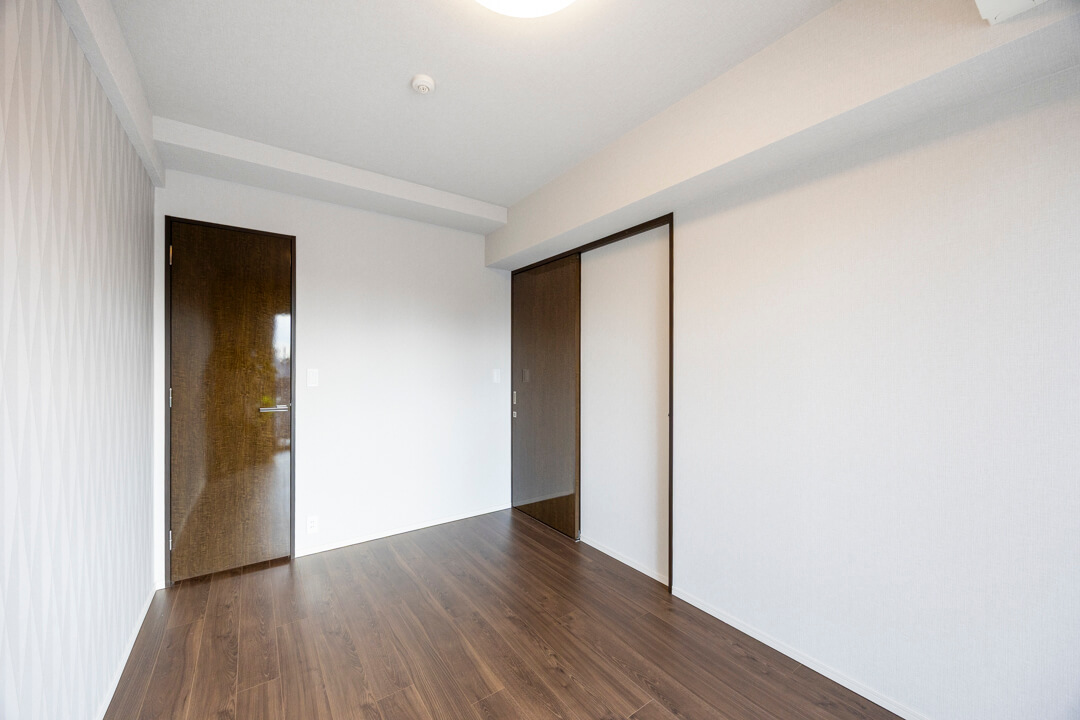 約5.0帖の寝室2は、リビングダイニングに隣接していますが、廊下からも出入り出来る便利な動線でになっています。クローゼットも付いていて、収納スペースも確保されており、過ごしやすい空間。客間や書斎など色々な使い方ができそうです。