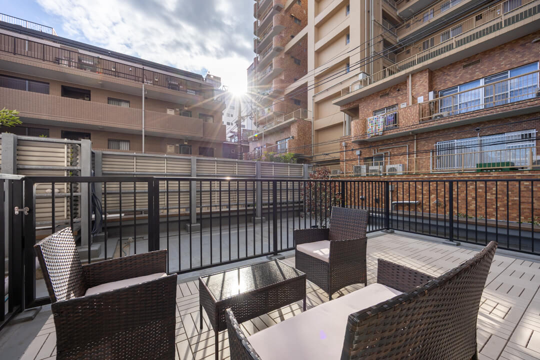 約19.62㎡のゆったりとしたルーフバルコニーです。テーブルセットなどを置けば、ティータイムを楽しむこともできそうですよ。南東向きで日当たりが良好で気持ちの良い空間となっています。