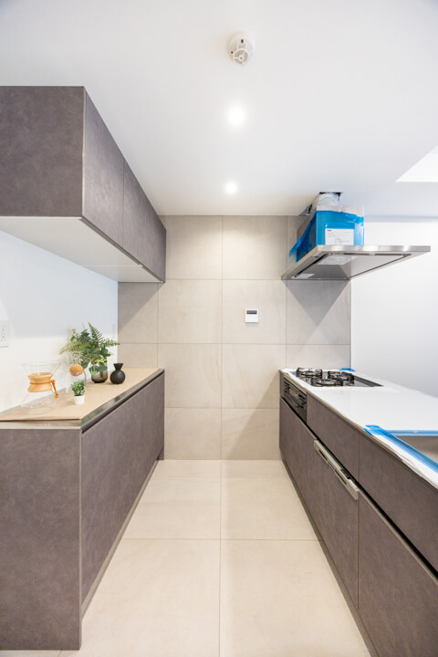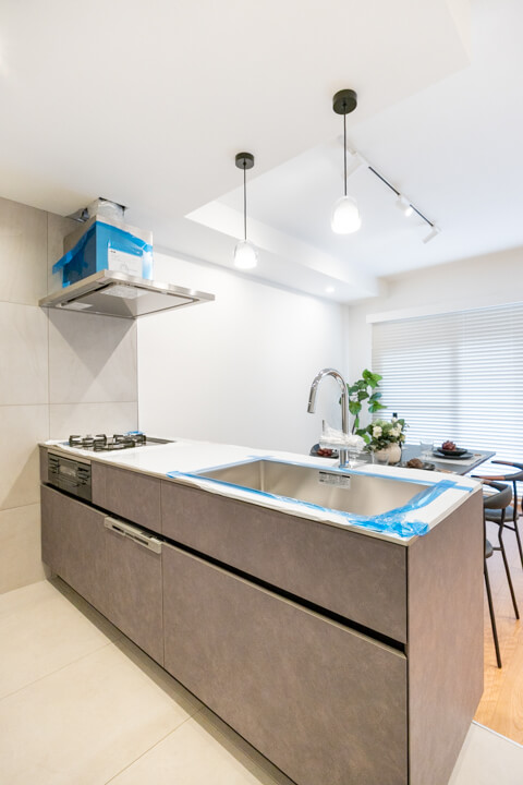 キッチンは、リビングダイニングを見渡しながら料理ができる対面式です。家族や来客とのコミュニケーションも取りやすくて◎。
