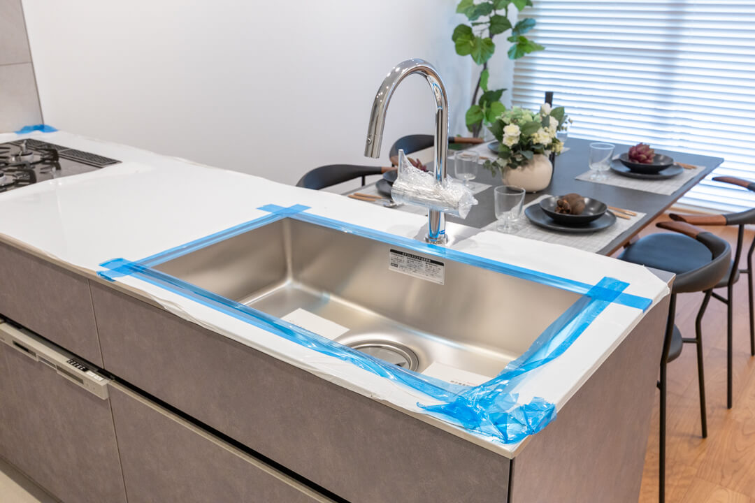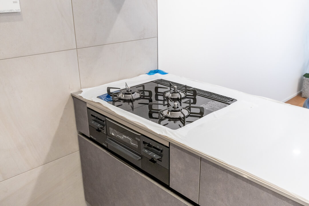 3口コンロ、グリル、食洗機付きと設備面も充実しています。シンクも広々としているので野菜などが洗いやすそうですよ。