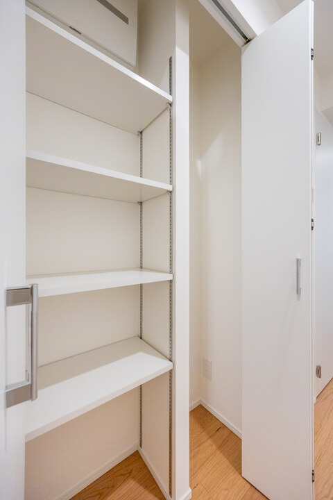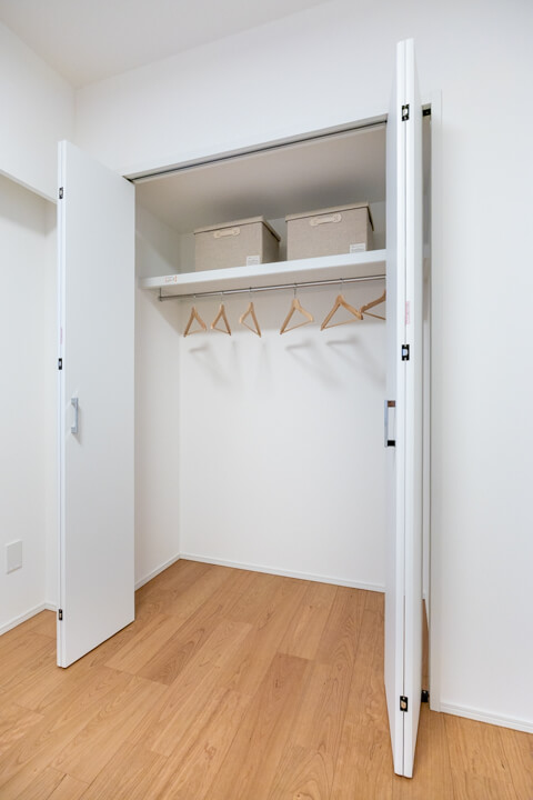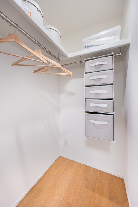 約4.7帖の寝室1には奥行きがあるウォークインクローゼットが造られています。洋服や大きめの荷物も収納できて嬉しいですね。独立性もあって、子ども部屋として使っても良さそうです。
