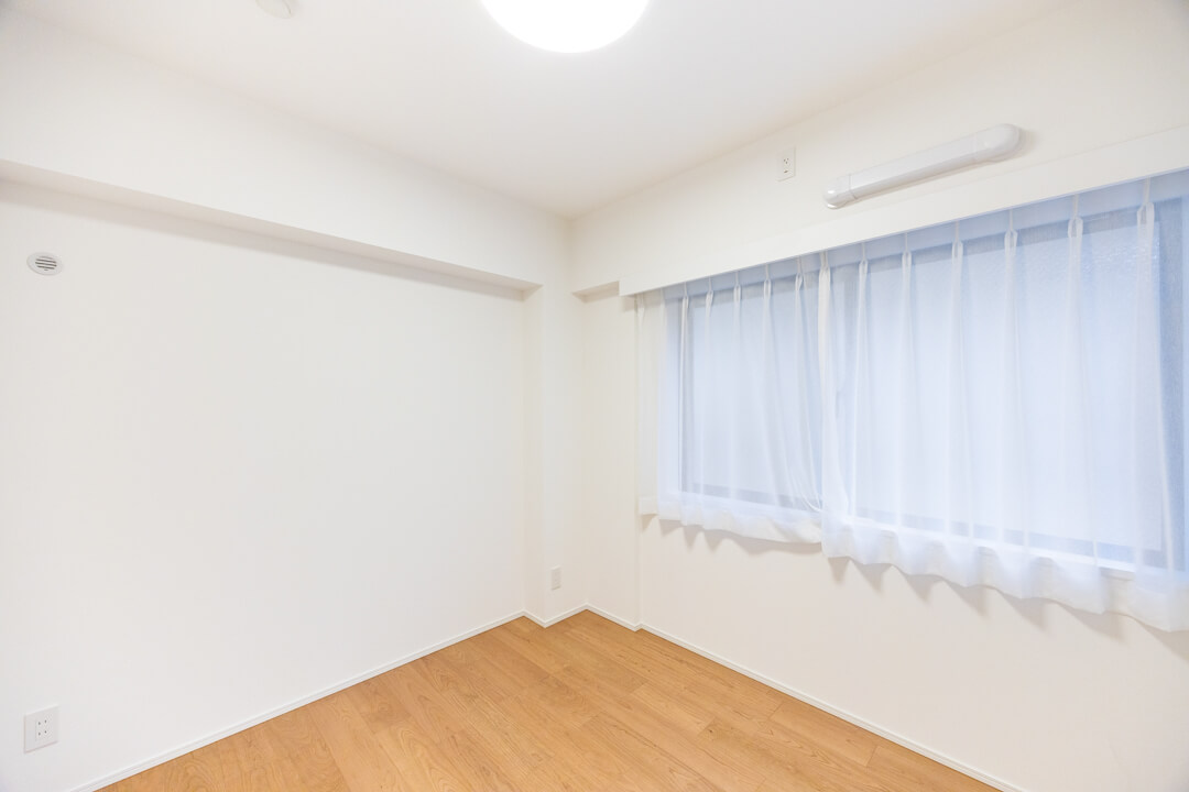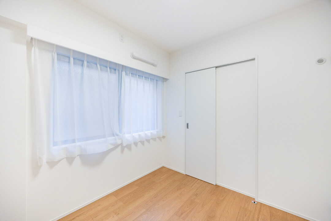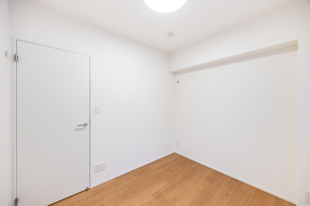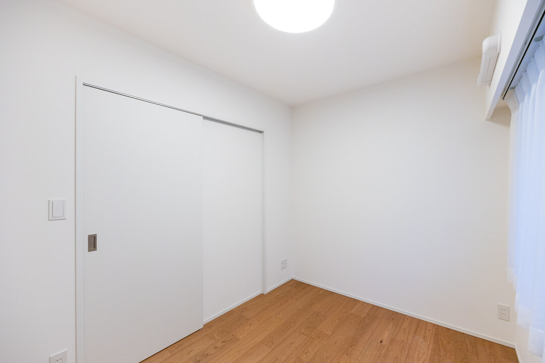 約4.6帖の寝室2は書斎や趣味部屋、リモートワークなどにぴったりなお部屋。クローゼットも付いているので、収納スペースが確保されています。また、写真にはありませんが、約7.2帖の寝室もあり、そこにはウォークインクローゼットも造られていて主寝室として使えそうです。