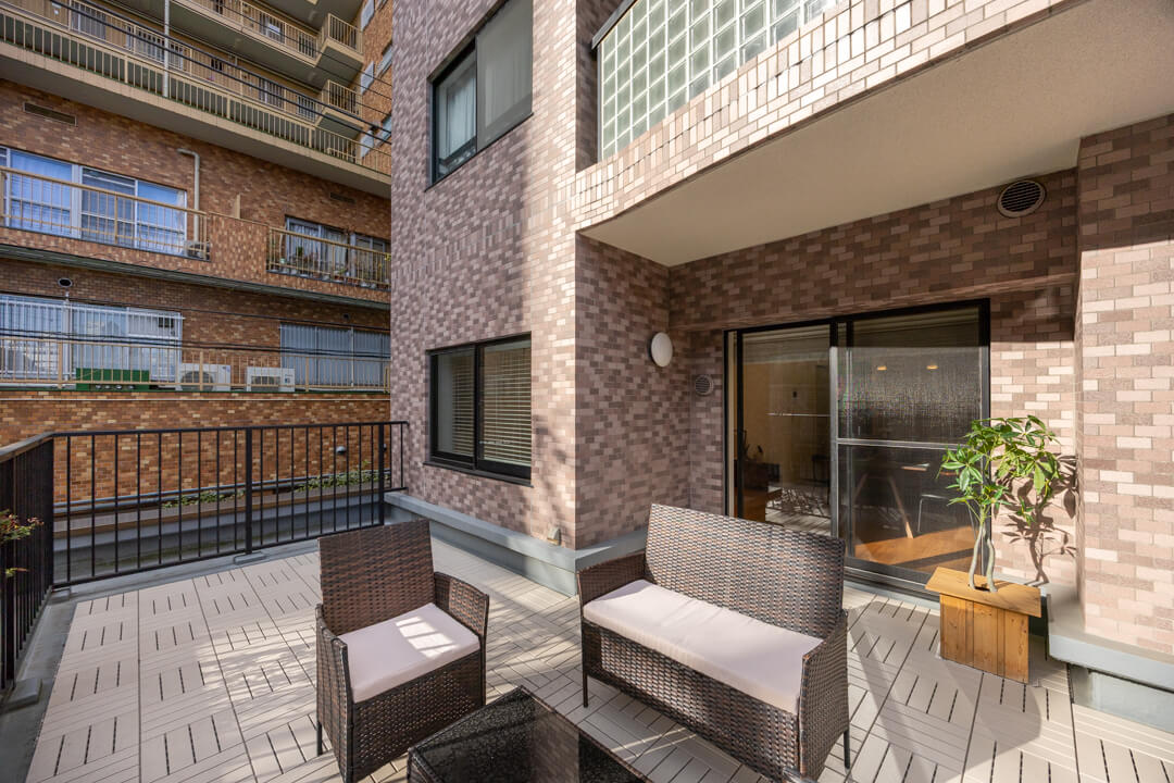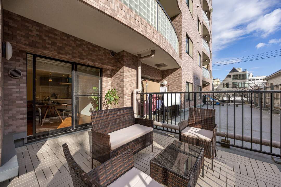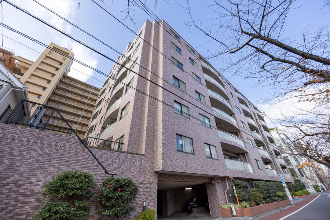 東京メトロ日比谷線・東急東横線「中目黒」駅より徒歩5分、桜の名所である「目黒川」沿いに佇む本マンション。オートロック完備でセキュリティ面は安心で、奥まったエントランスも特徴的です。周辺にはおしゃれなカフェなども多く、日々の息抜きもしやすくなっています。お部屋は三方角部屋の3LDK。約19㎡超えの広々としたルーフバルコニーが付いており、ティータイムなどを気軽に楽しむことができますよ。