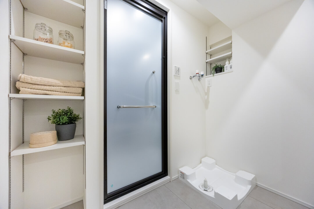 スタイリッシュな印象のバスルームです。お風呂にゆっくり浸かるのが好きという方に嬉しい追い焚き機能を搭載。家族の入浴時間がずれてしまっても安心です。また、浴室乾燥機には暖