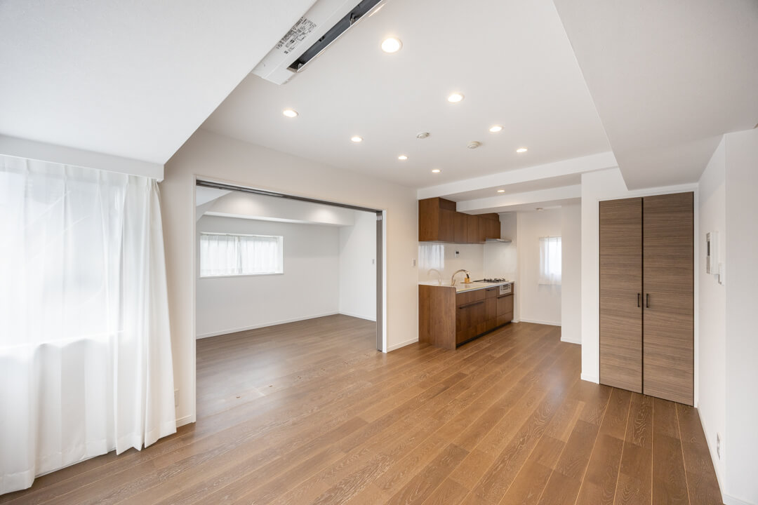 洋室1との引戸を開閉することによって、空間をフレキシブルに使うことができます。