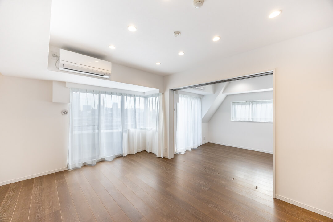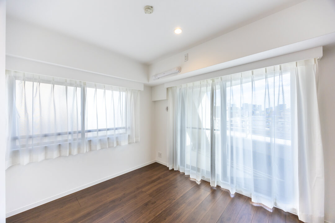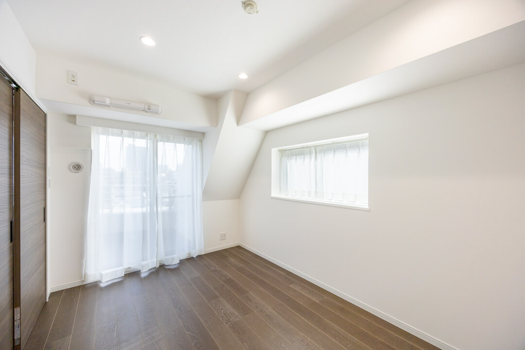約6.0帖の洋室2は、主寝室に良さそうなお部屋です。二面採光で開放感があり、クローゼットもあります。奥行きがあるタイプなので、たくさんの荷物を収納することができそうですよ。