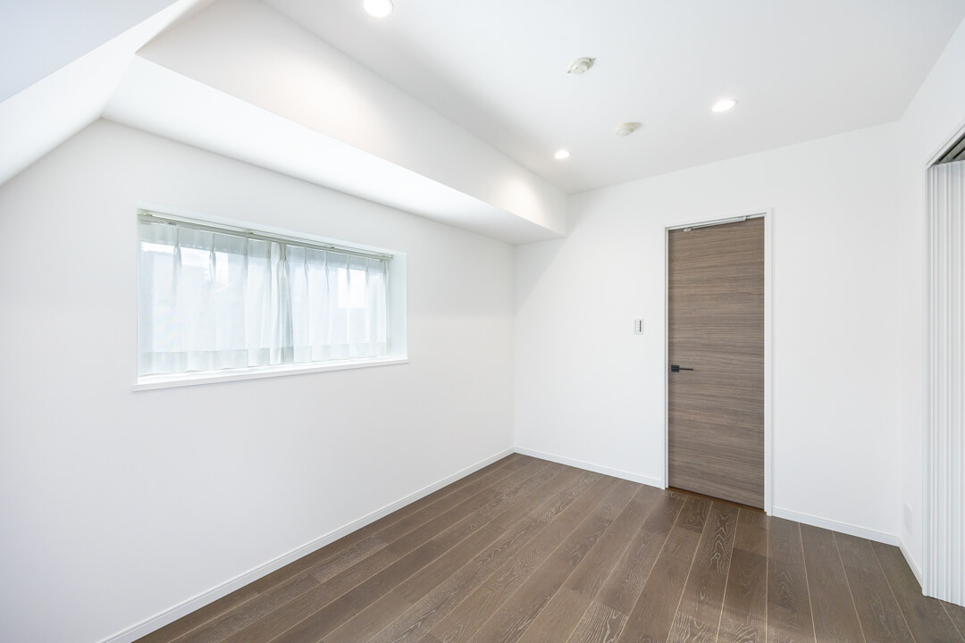 約6.9帖のゆとりがある洋室1です。リビングダイニングキッチンに隣接していて、引戸を開ければお部屋を繋げて使うこともできますよ。また、約2.1帖のウォークインクローゼット付きで洋服や大きめの荷物も収納することが可能です。