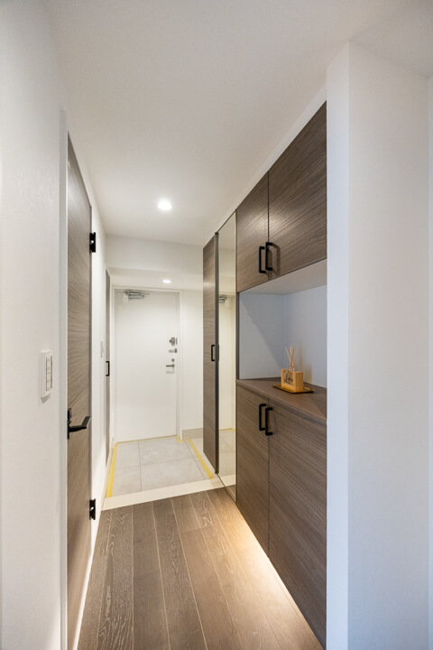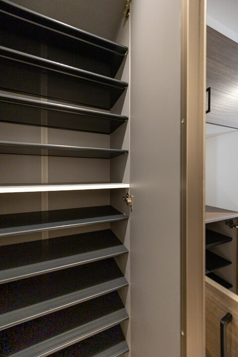 玄関にはセパレートタイプで靴が収納できるだけでなく、小物も飾れるシューズボックスが備え付けられています。さらに、玄関収納も2つあって、すっきりと整頓させることができますよ。