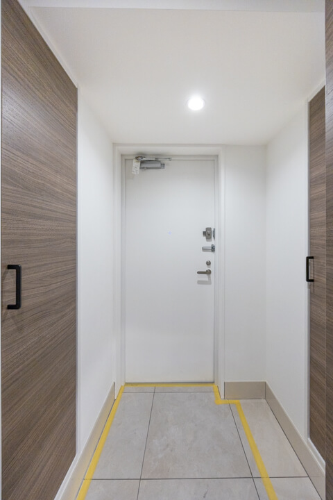 玄関の外にはポーチがあります。ワンフロア1住戸という嬉しい造りのため、戸建て感覚でお住まいいただけます。