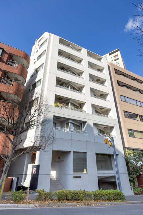 1998年(平成10年)9月竣工、鹿島建設施工の9階建マンションです。鉄骨鉄筋コンクリート造、総戸数は15戸。コンクリート打ちっ放しのスタイリッシュな外観が印象的です。エントランスは安心のオートロック体制で、不在時に重宝する宅配ボックスが設置されています。駐輪場・バイク置き場があるので、お出かけの幅が広がりそう。空き状況は変動するのでお問い合わせくださいね。細則はありますが、ペットの飼育や事務所利用も相談も可能です。