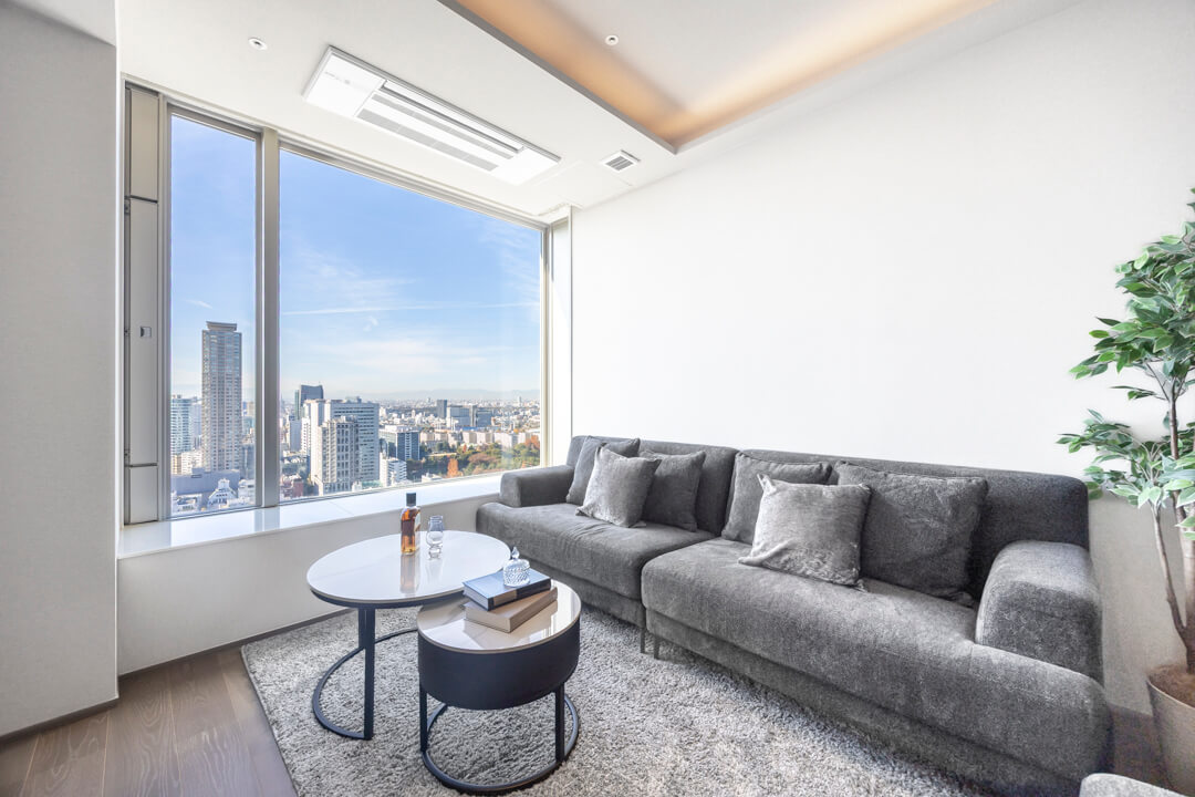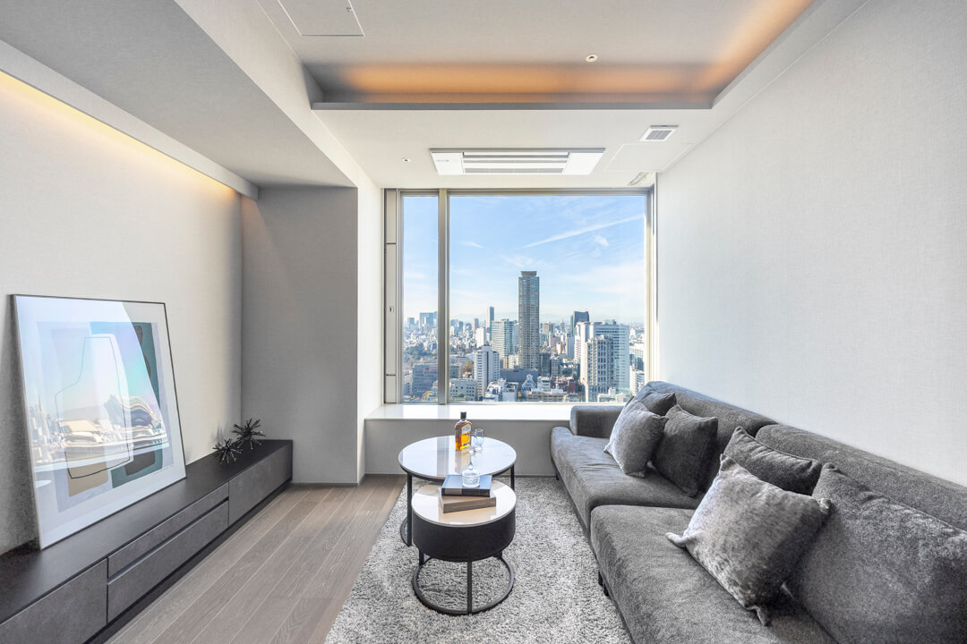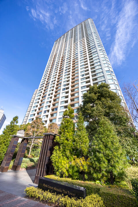 2009年6月に竣工した「パークコート赤坂ザ・タワー」。地下2階付地上43階建、総戸数521戸の大規模タワーレジデンスです。オートロックに加え、24時間有人管理体制でセキュリティ面も安心です。東京メトロ千代田線「赤坂」駅、東京メトロ銀座線・半蔵門線・都営大江戸線「青山一丁目」駅より徒歩10分の立地で、交通利便性も良好。「赤坂御用地」や「赤坂Bizタワー」「赤坂サカス」が近く、自然の潤いと都市の便利さを同時に享受できるロケーションです。今回ご紹介するお部屋は33階部分、専有面積83㎡の2LDK。全居室南西向きで日当たり良好です。窓からは高層ならではの開放的な青空と豊かな緑を望むことができ、日々の暮らしに癒しをもたらしてくれます。床暖房やディスポーザー、ミーレ製食洗機など、快適な生活を支える設備も充実。細則はありますが、大切なペットと一緒に暮らすことができます。