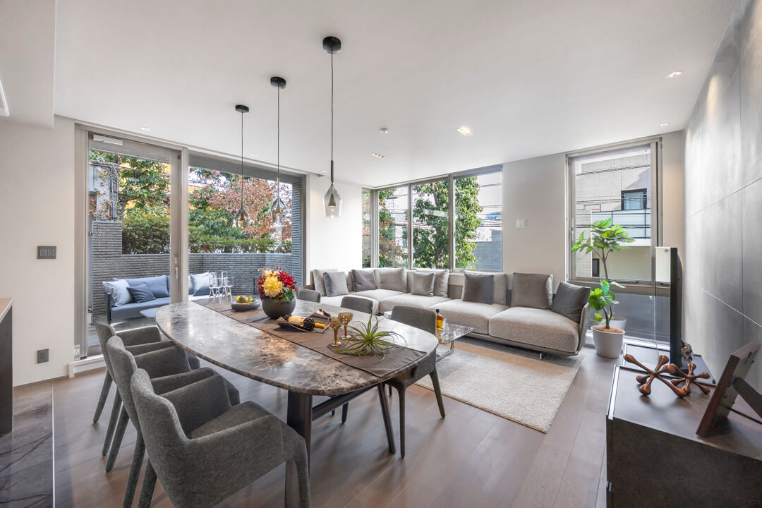由緒ある高台の住宅地、城南五山の一つである「池田山」エリアに佇む高級低層マンション「フォレセーヌ池田山公園」。街並みにふさわしい重厚感のある外観で、気品を感じます。多重セキュリティシステムで安心感が得られ、ラウンジなど共用施設も充実しています。お部屋は専有面積100㎡超えの角部屋2LDK。プライバシーを大切にできる間取りな上に、専用使用権付きの平置き駐車場が付いています。外から直接アクセスでき、日常の移動もスムーズに。テラスではティータイムを楽しむこともできますよ。さらに、細則はありますが大型犬の飼育も可能となっています。