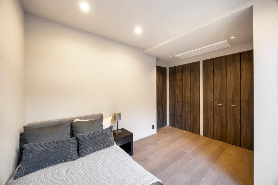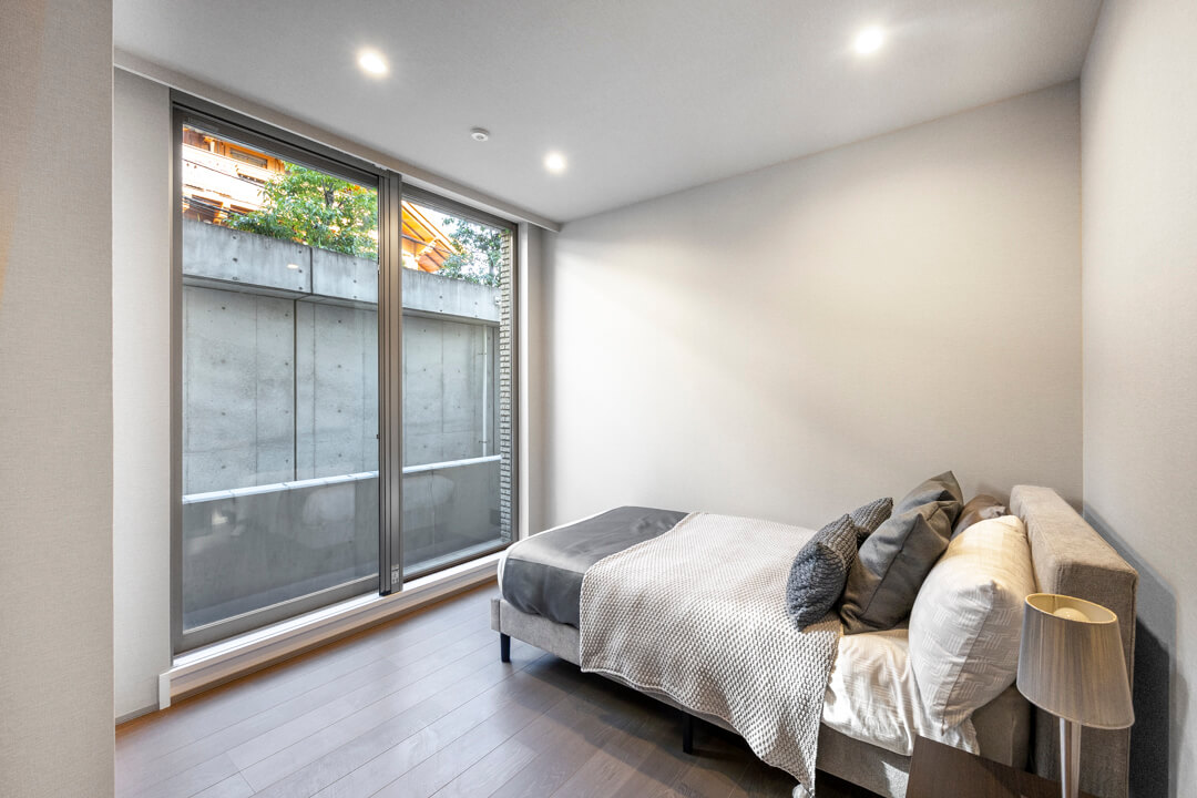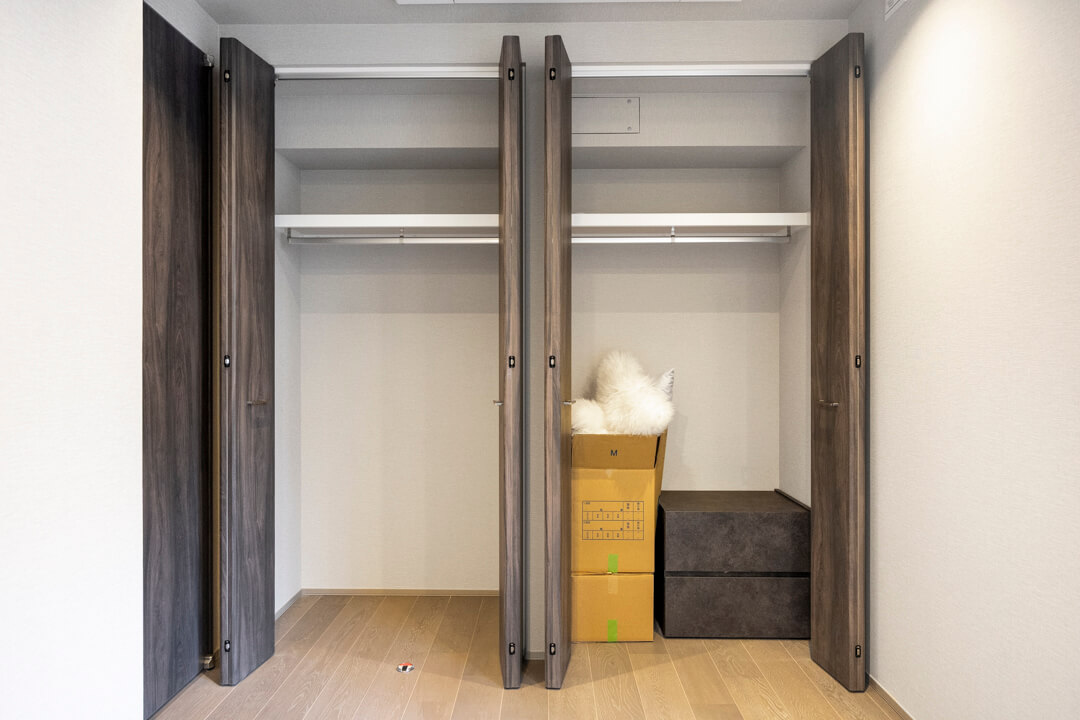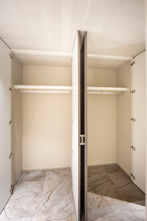 約7.1帖の寝室にも奥行きがあるクローゼットが造られています。荷物をすっきり収納できると居住スペースをより有効的に使えるので嬉しいですね。書斎や子ども部屋など色々な使い方ができます。窓からはバルコニーにアクセスが可能。