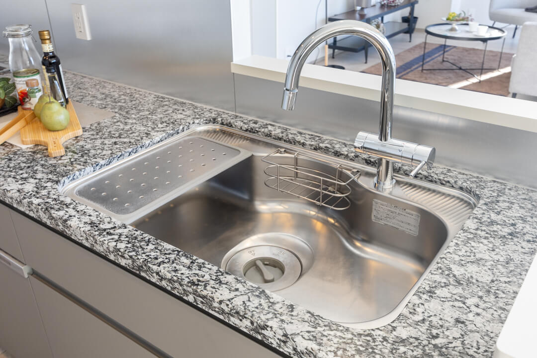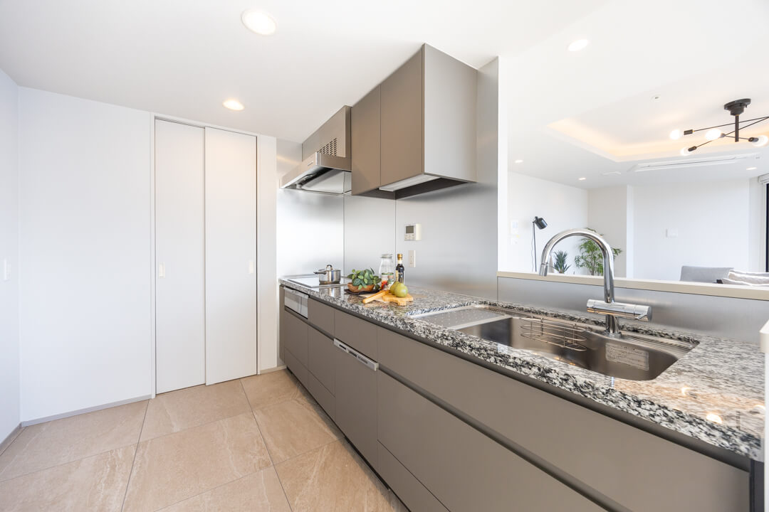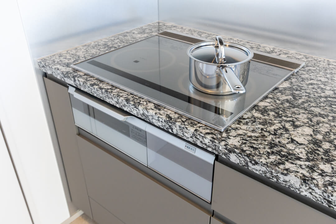 3口IHクッキングヒーター、グリル、ディスポーザー食洗機付きと設備面も充実しています。シンクも広々としているので野菜などが洗いやすそうですよ。
