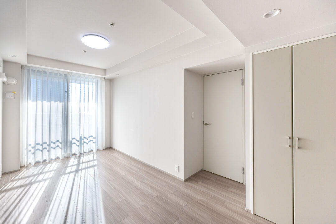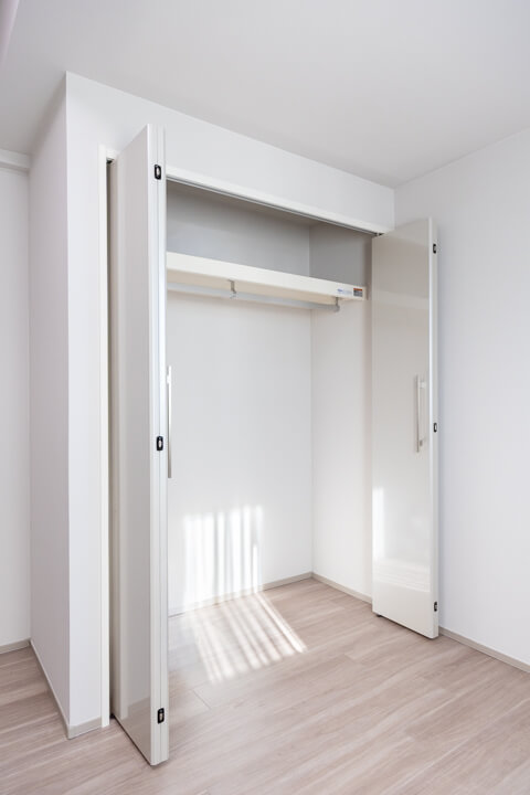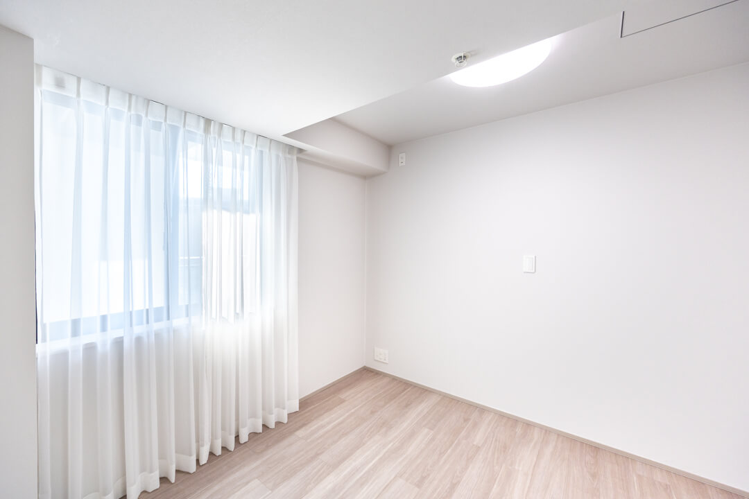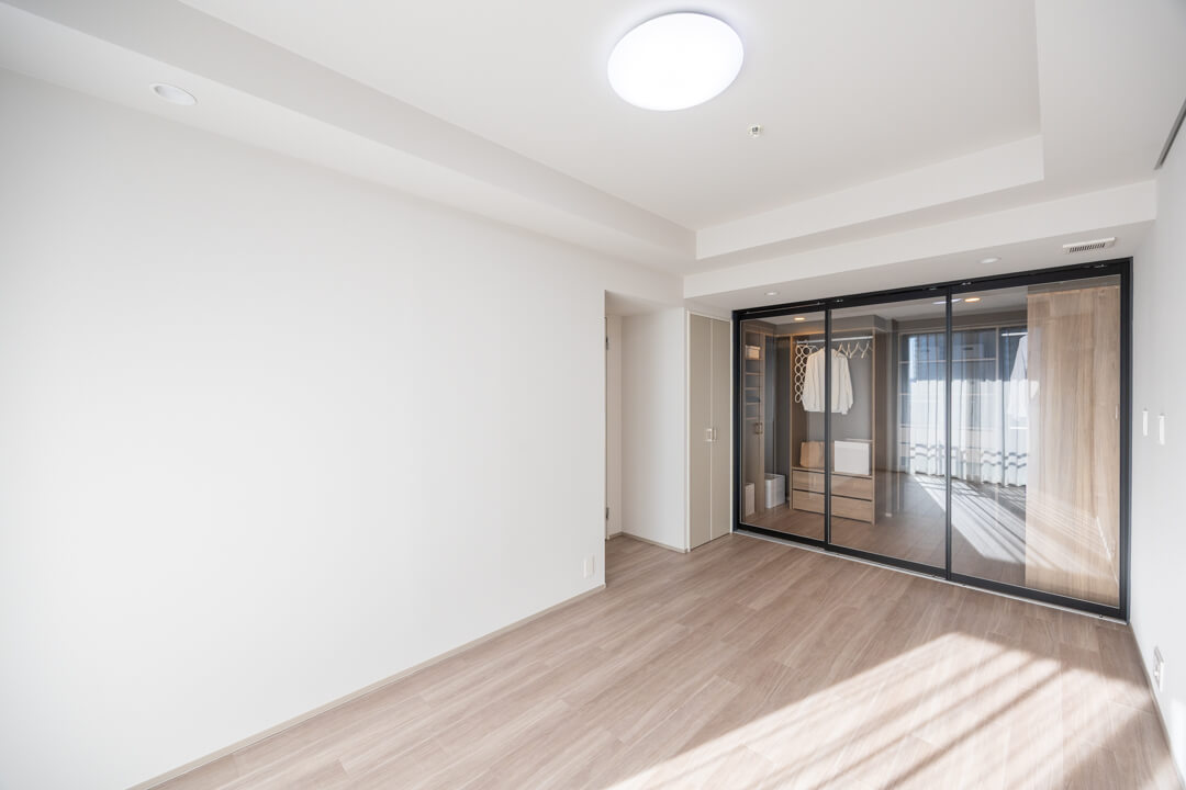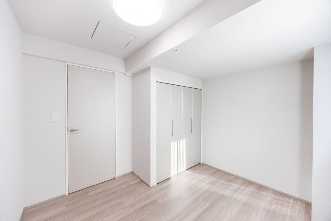 約5.7帖の寝室2は、クローゼットや窓があって過ごしやすい空間。書斎や子ども部屋・リモートワークなど色々な使い方ができそうですよ。奥行きがあるクローゼットなのも◎。