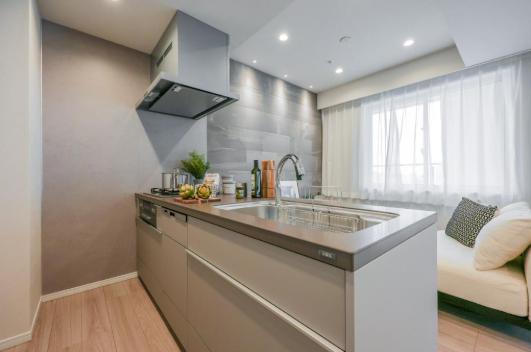 3口コンロ、グリル、ディスポーザー、食洗機付きと設備面も充実しています。シンクも広々としているので野菜などが洗いやすそうですよ。