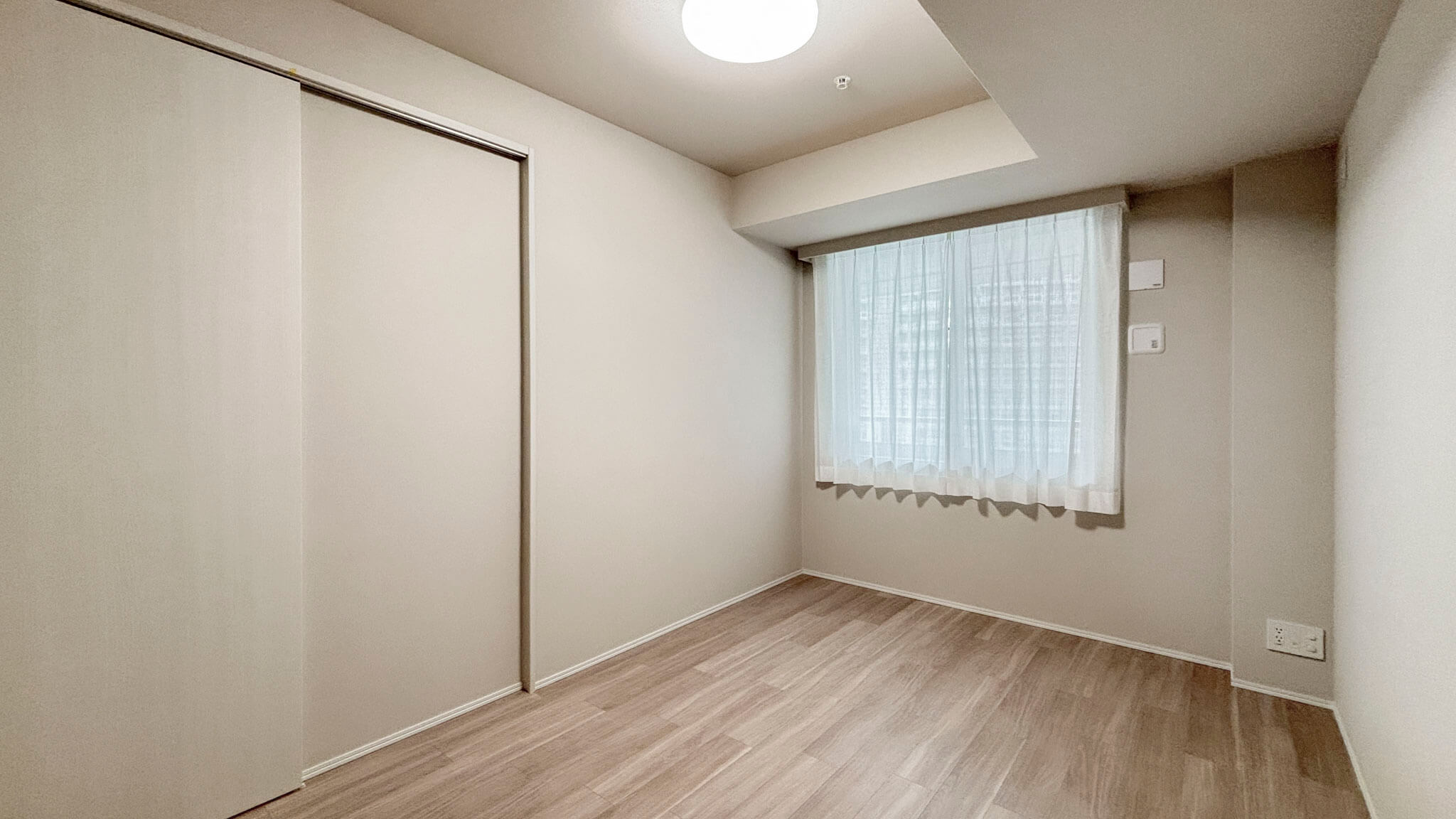 約6.0帖の洋室2。LDKに隣接しながらも、プライベート感のある空間です。クローゼット完備で収納スペースもしっかり確保◎。寝室としてはもちろん、ワークスペースや趣味部屋にもおすすめです。