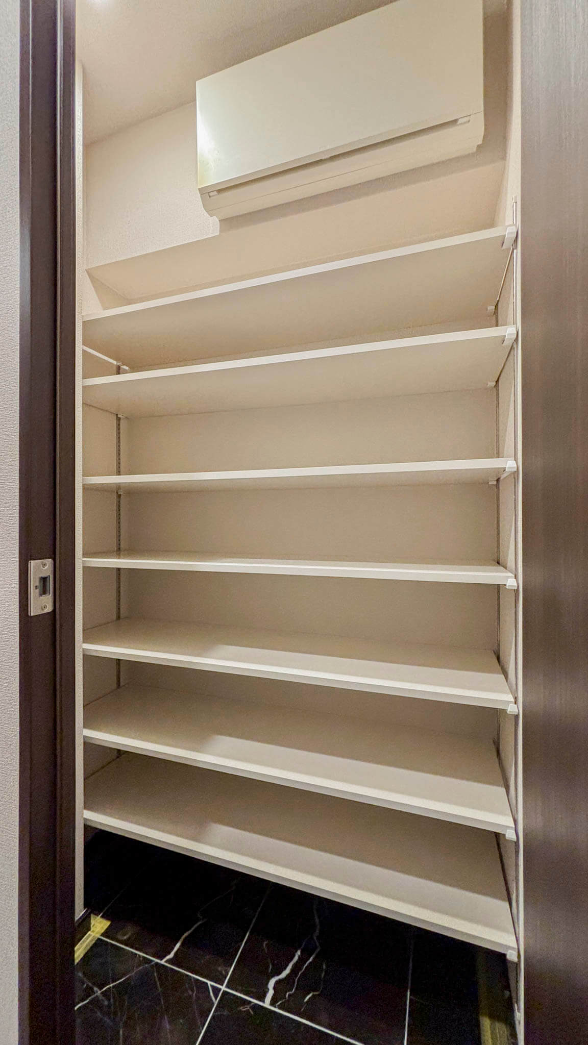 玄関にはSIC(シューズインクローゼット)を設置。自由度の高い可動棚で、ロングブーツやレインシューズもすっきり収納できます。