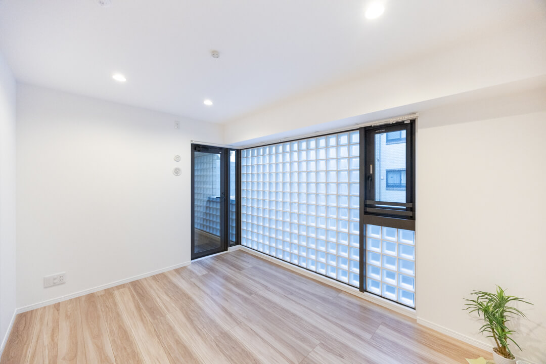 約6.6帖の洋室。廊下に面した独立性の高いお部屋で、自分時間をゆっくりと過ごせます。ガラスブロックが印象的で、やわらかな光を取り入れます。クローゼットも備わっていますよ。