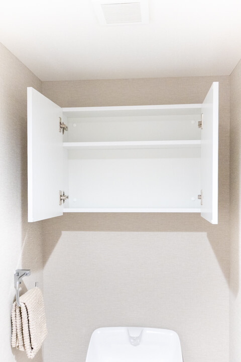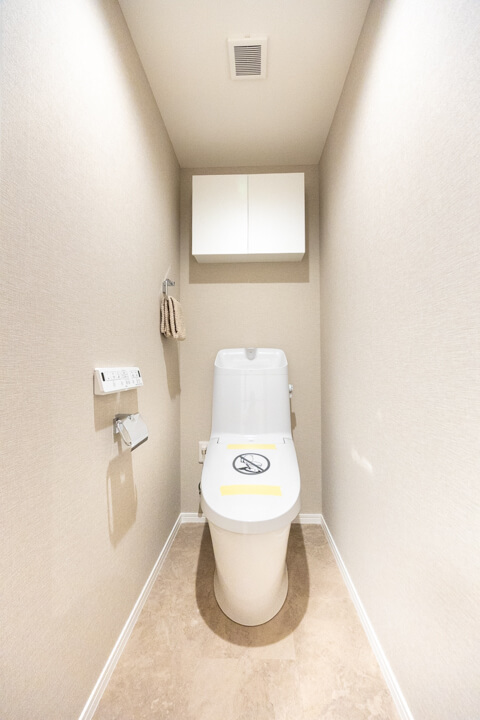 廊下に面したレストルーム。手洗いタンク付きのトイレです。ウォシュレット、収納スペースも備わっています。