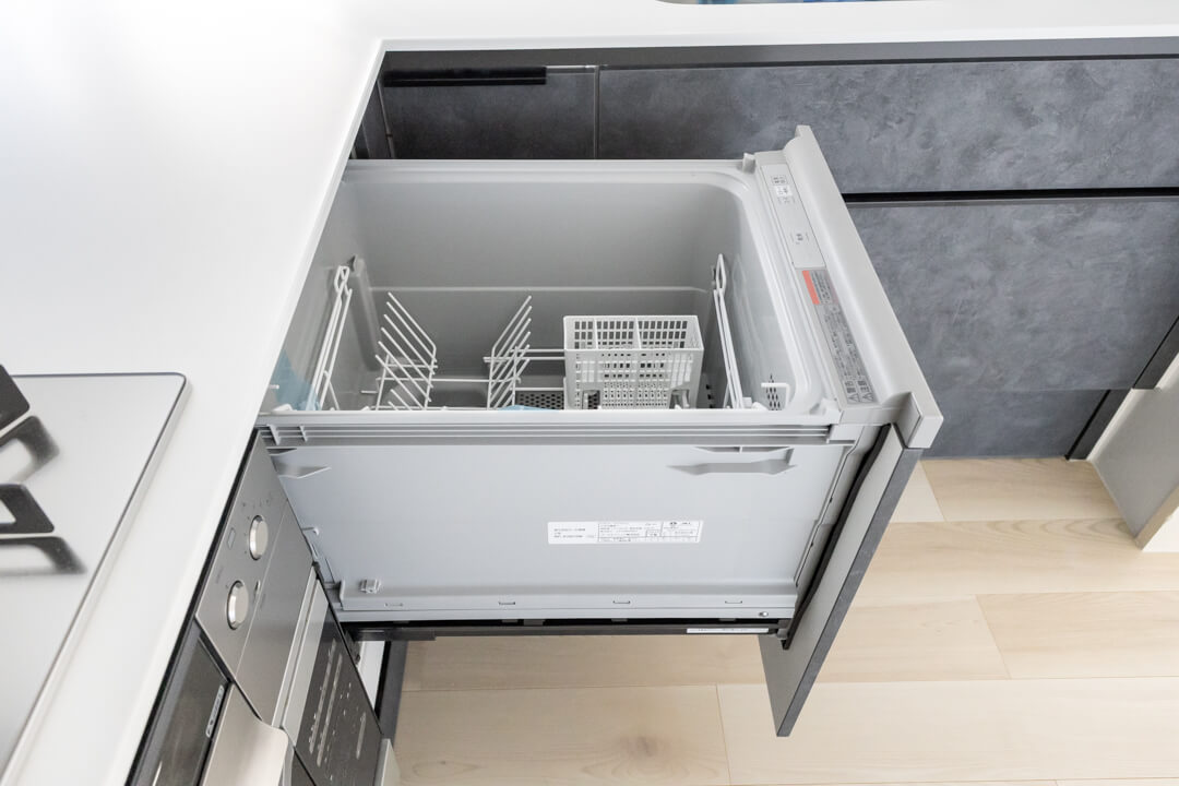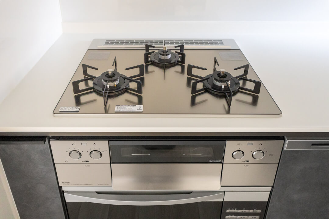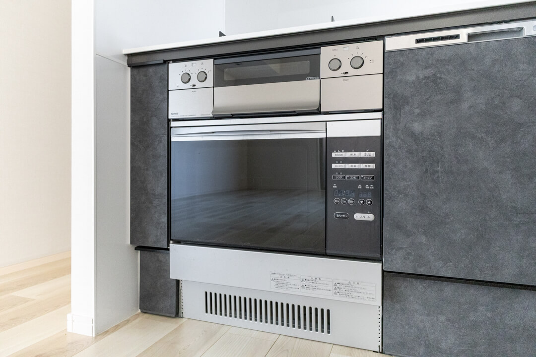 グリル付3口ガスコンロ・オーブン内蔵で同時調理が叶います。料理のレパートリーも増えそうですね。調理の際に手軽においしい水を使用できる浄水器一体型水栓や、後片付けが捗る食洗機も完備していて設備充実◎。快適なキッチン時間になりそうです。
