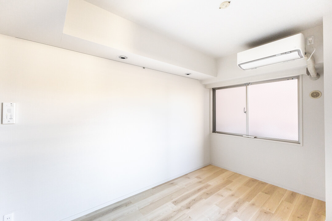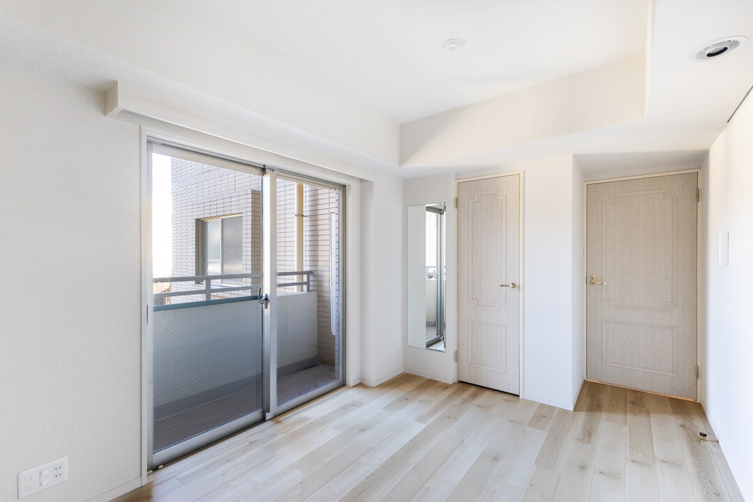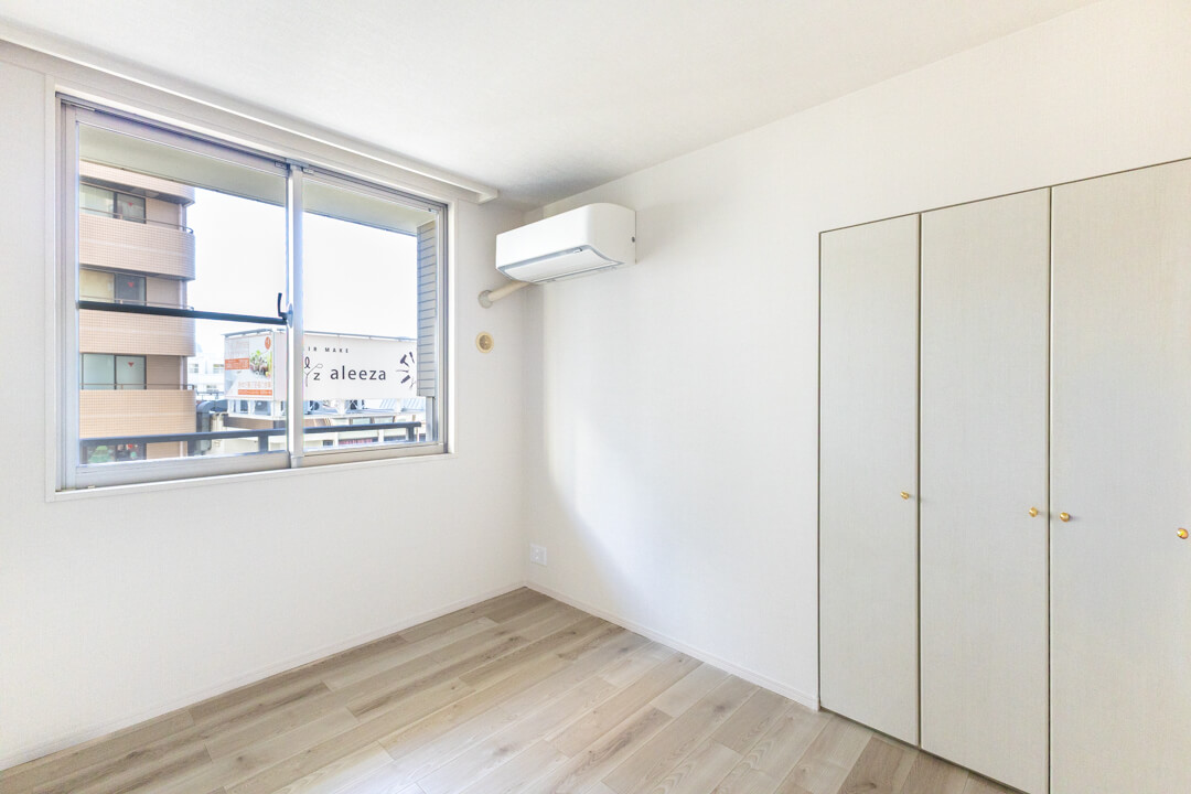 お隣にある寝室2は約5.0帖。東向きの窓&クローゼット付きです。シンプルな内装なので、自分好みの家具選びを楽しめそうですね。寝室としてはもちろん、ワークスペースや趣味部屋としても使い勝手の良い空間です。